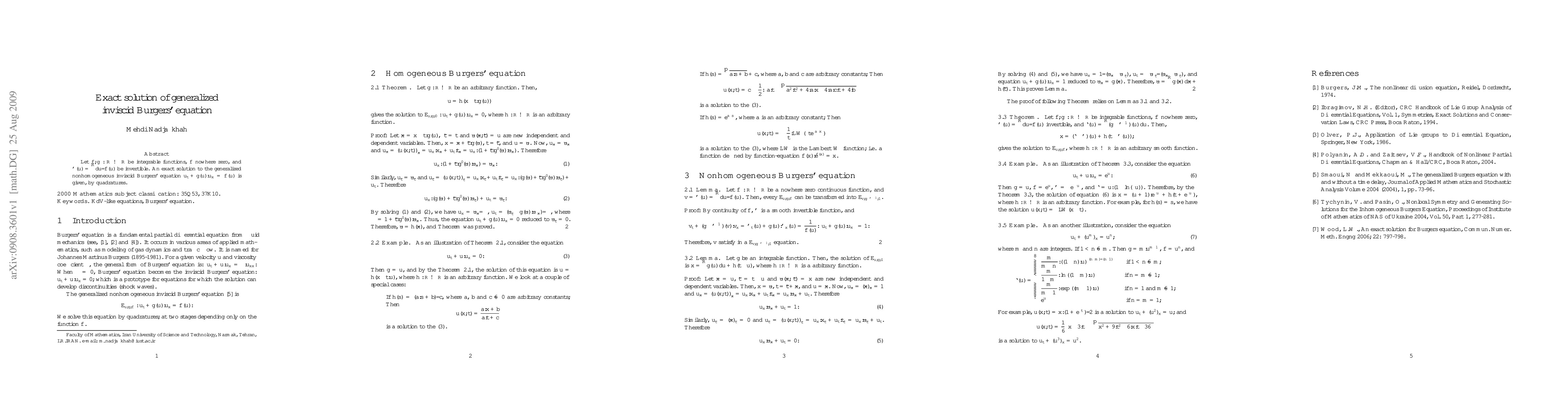 The paper presents an exact solution to the generalized inviscid Burgers' equation using quadratures, where $f$ and $g$ are integrable functions and $f$ is nowhere zero, with $\phi(u)$ being the invertible integral of $1/f(u)$.
