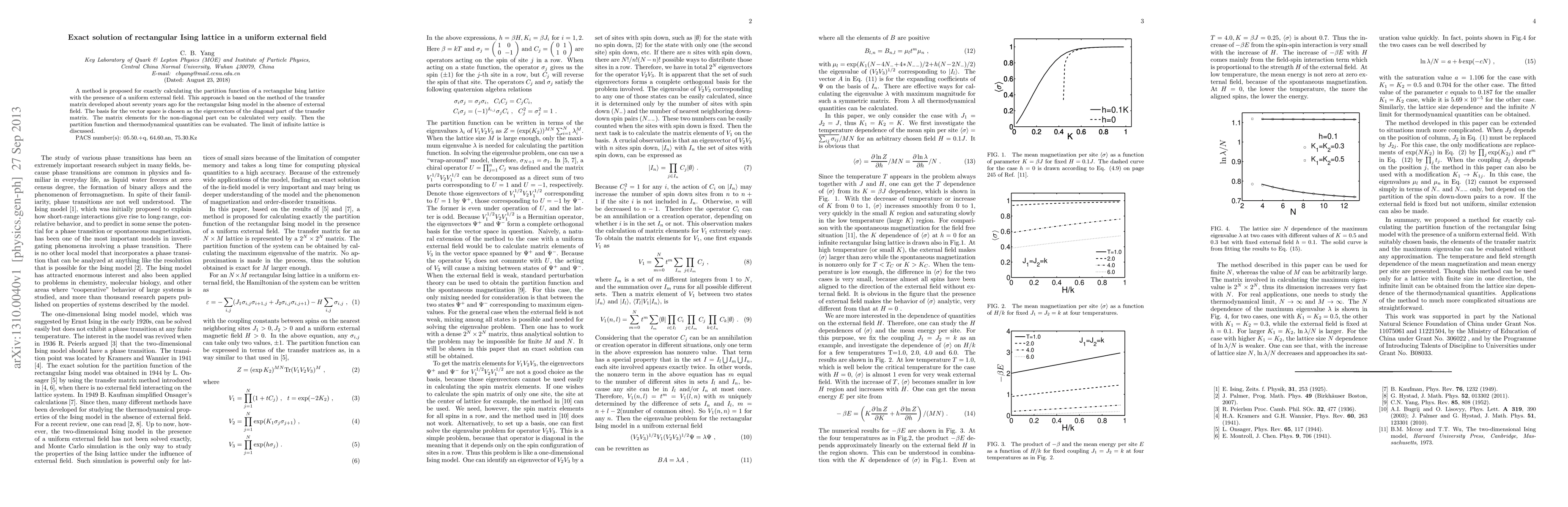This paper presents an exact method for calculating the partition function of a rectangular Ising lattice under a uniform external field using the transfer matrix approach, focusing on the eigenvectors of the diagonal part for simplification. The method also discusses the infinite lattice limit.