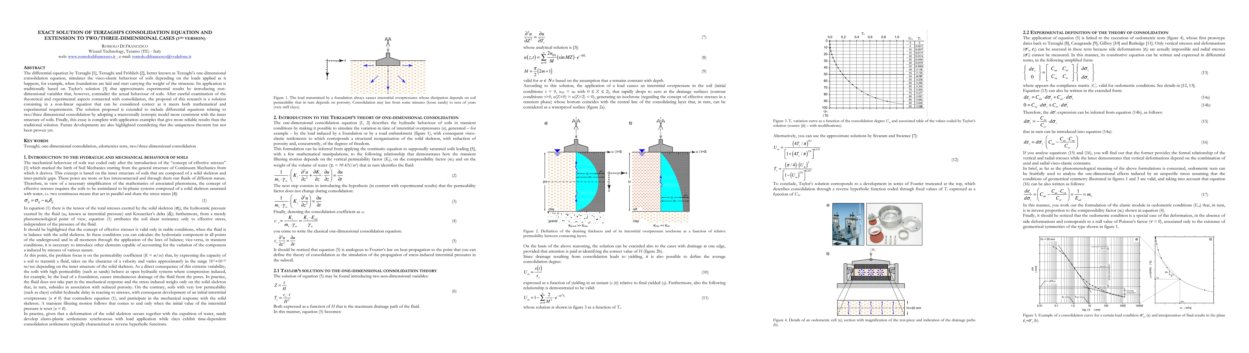 Terzaghi's one-dimensional consolidation equation simulates the visco-elastic behaviour of soils depending on the loads applied as it happens, for example, when foundation are laid and start carrying the weight of the structure. Its application is traditionally based on Taylor's solution that approximates experimental results by introducing non-theoretical variables that, however, contradict the actual behaviou of soils. After careful examination of the theoretical and experimental aspects connected with consolidation, the proposal of this research is a solution consisting in a non-linear equation that can be considered correct as it meets both mathematical and experimental requirements. The solution proposed is extended to include differential equations relating to two/three dimensional consolidation by adopting a transversally isotropic model more consistent with the inner structure of soils. Finally, this essay is complete with application examples that give more reliable results than the traditional solution. Future developments are also highlighted considering that the uniqueness theorem has not been proven yet.
