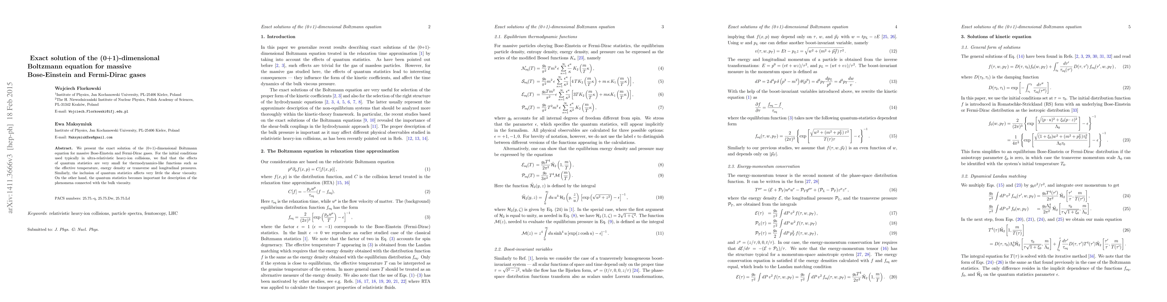This paper provides the exact solution for the (0+1)-dimensional Boltzmann equation for massive Bose-Einstein and Fermi-Dirac gases, revealing minimal quantum statistical effects on thermodynamics-like functions and shear viscosity, but significant impacts on bulk viscosity.