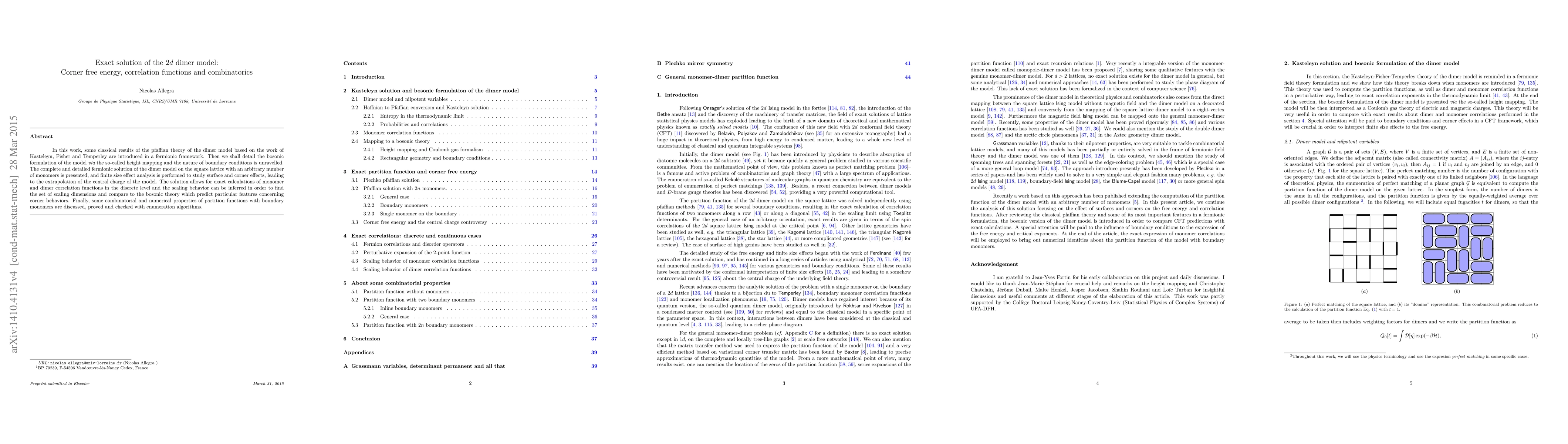 Researchers solve a quantum model called the dimer model on a 2D square lattice, finding exact solutions for correlation functions and scaling behavior, which differs from previous bosonic theory predictions.
