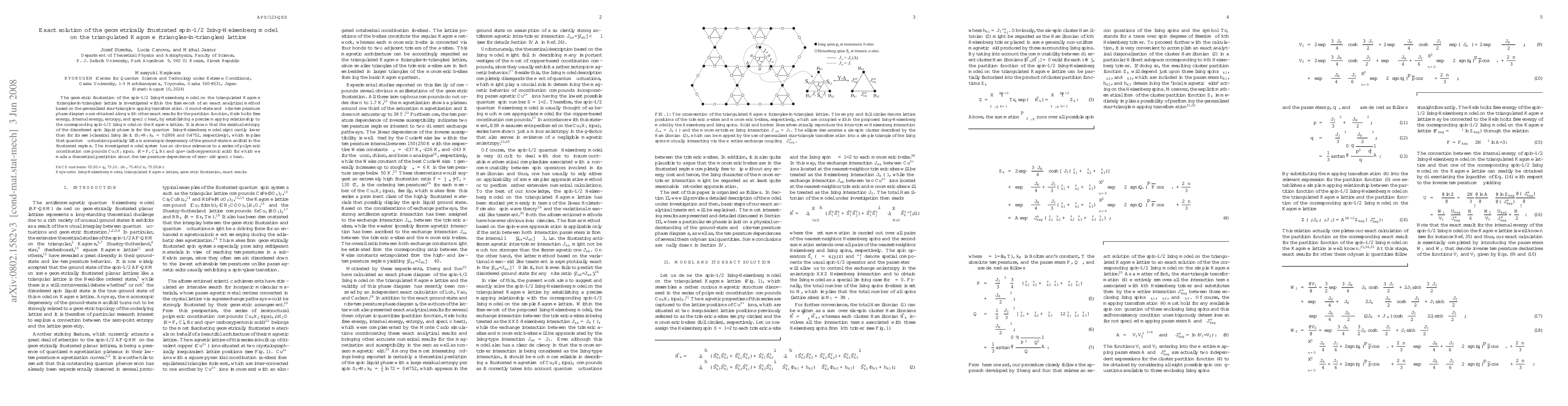This paper presents an exact analytical solution for the geometrically frustrated spin-1/2 Ising-Heisenberg model on the triangulated Kagome lattice, revealing a lower residual entropy in the quantum Ising-Heisenberg model compared to its semi-classical Ising counterpart, indicating that quantum fluctuations reduce ground-state degeneracy. The findings are relevant to polymeric coordination compounds like Cu_9X_2(cpa)_6.