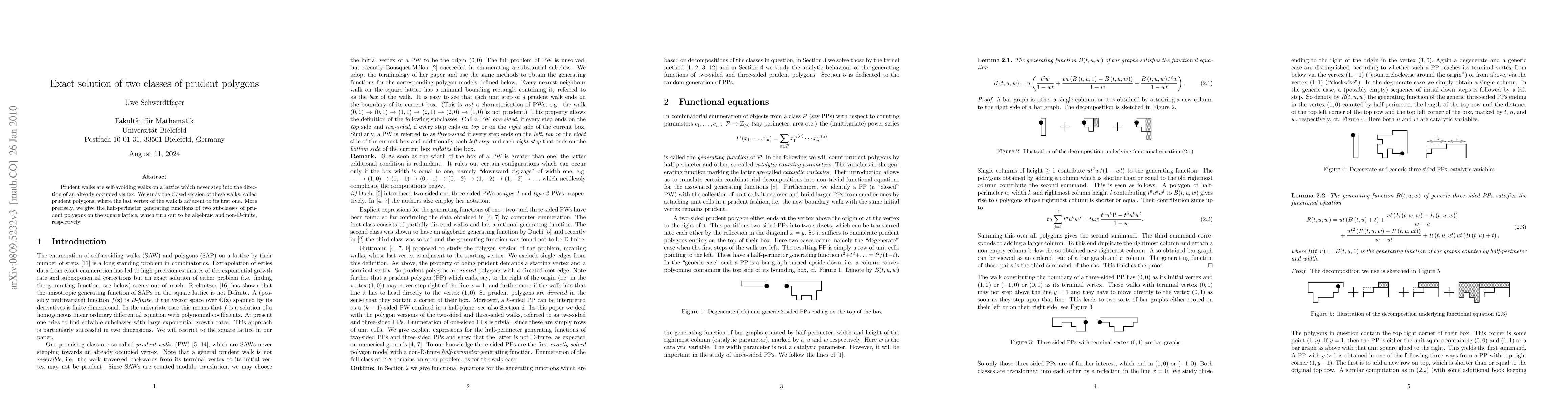 This paper provides exact solutions for two subclasses of prudent polygons, self-avoiding walks on the square lattice that avoid previously occupied vertices. It presents algebraic half-perimeter generating functions for one subclass and non-D-finite functions for the other.