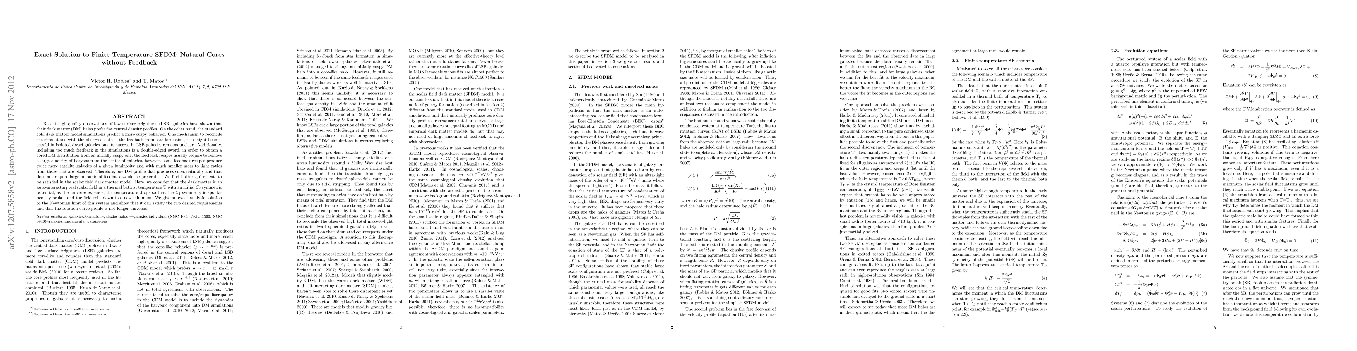 Recent high-quality observations of low surface brightness (LSB) galaxies have shown that their dark matter (DM) halos prefer flat central density profiles. On the other hand, the standard cold dark matter model simulations predict a more cuspy behavior. One mechanism to reconcile the simulations with the observed data is the feedback from star formation, this might be successful in isolated dwarf galaxies but its success in LSB galaxies remains unclear. Additionally, including too much feedback in the simulations is a double-edged sword, in order to obtain a cored DM distribution from an initially cuspy one, the feedback recipes usually require to remove a large quantity of baryons from the center of galaxies, however, some feedback recipes produce twice more satellite galaxies of a given luminosity and with much smaller mass to light ratios from those that are observed. Therefore, one DM profile that produces cores naturally and that does not require large amounts of feedback would be preferable. We find both requirements to be satisfied in the scalar field dark matter model. Here, we consider that the dark matter is an auto-interacting real scalar field in a thermal bath at temperature T with an initial $Z_2$ symmetric potential, as the universe expands, the temperature drops so that the $Z_2$ symmetry is spontaneously broken and the field rolls down to a new minimum. We give an exact analytic solution to the Newtonian limit of this system and show that it can satisfy the two desired requirements and that the rotation curve profile is not longer universal.