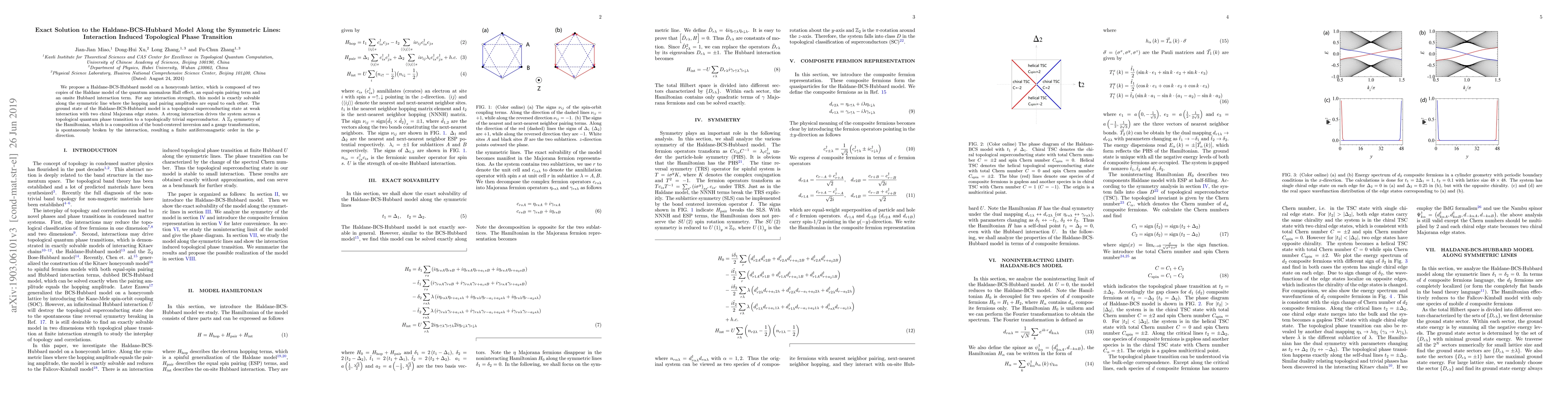 This paper presents an exact solution to the Haldane-BCS-Hubbard model on a honeycomb lattice, showing it is solvable along symmetric lines. The model exhibits a topological superconducting phase with Majorana edge states at weak interactions, transitioning to a trivial superconductor under strong interactions, accompanied by a broken $\mathbb{Z}_{2}$ symmetry and finite antiferromagnetic order.