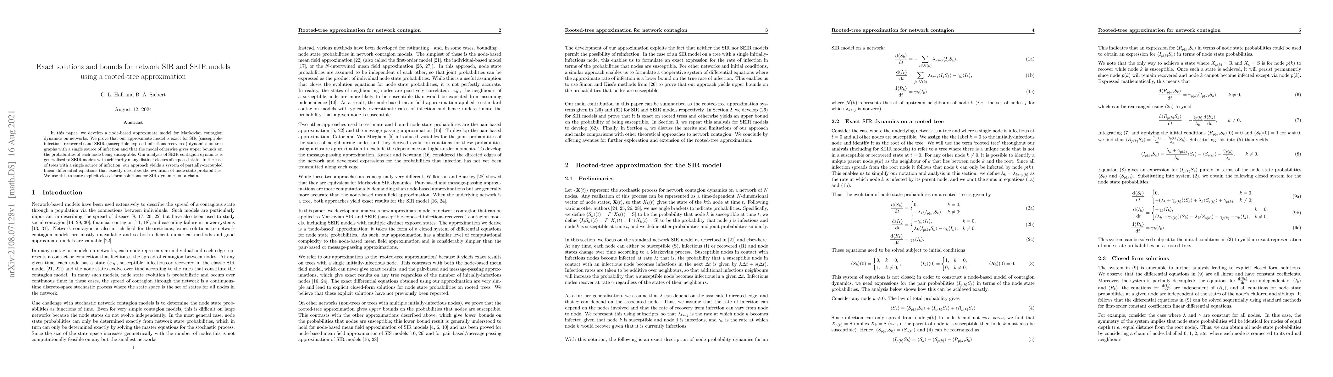 Researchers developed a new model for network contagion dynamics that provides exact solutions and bounds for SIR and SEIR models on tree graphs with a single source of infection.