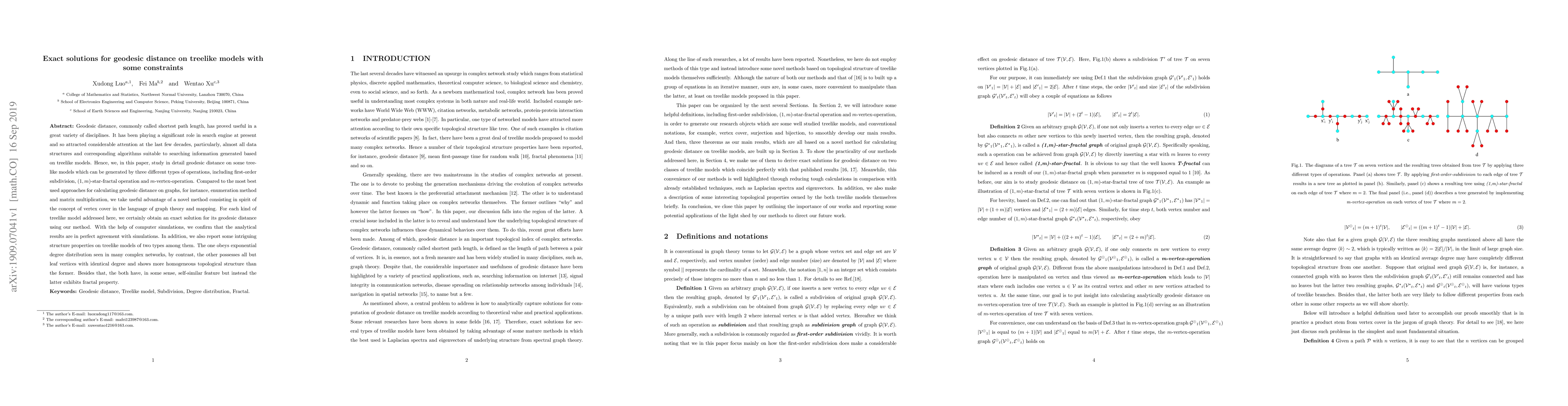 Geodesic distance, commonly called shortest path length, has proved useful in a great variety of disciplines. It has been playing a significant role in search engine at present and so attracted considerable attention at the last few decades, particularly, almost all data structures and corresponding algorithms suitable to searching information generated based on treelike models. Hence, we, in this paper, study in detail geodesic distance on some treelike models which can be generated by three different types of operations, including first-order subdivision, ($1,m$)-star-fractal operation and $m$-vertex-operation. Compared to the most best used approaches for calculating geodesic distance on graphs, for instance, enumeration method and matrix multiplication, we take useful advantage of a novel method consisting in spirit of the concept of vertex cover in the language of graph theory and mapping. For each kind of treelike model addressed here, we certainly obtain an exact solution for its geodesic distance using our method. With the help of computer simulations, we confirm that the analytical results are in perfect agreement with simulations. In addition, we also report some intriguing structure properties on treelike models of two types among them. The one obeys exponential degree distribution seen in many complex networks, by contrast, the other possesses all but leaf vertices with identical degree and shows more homogeneous topological structure than the former. Besides that, the both have, in some sense, self-similar feature but instead the latter exhibits fractal property.