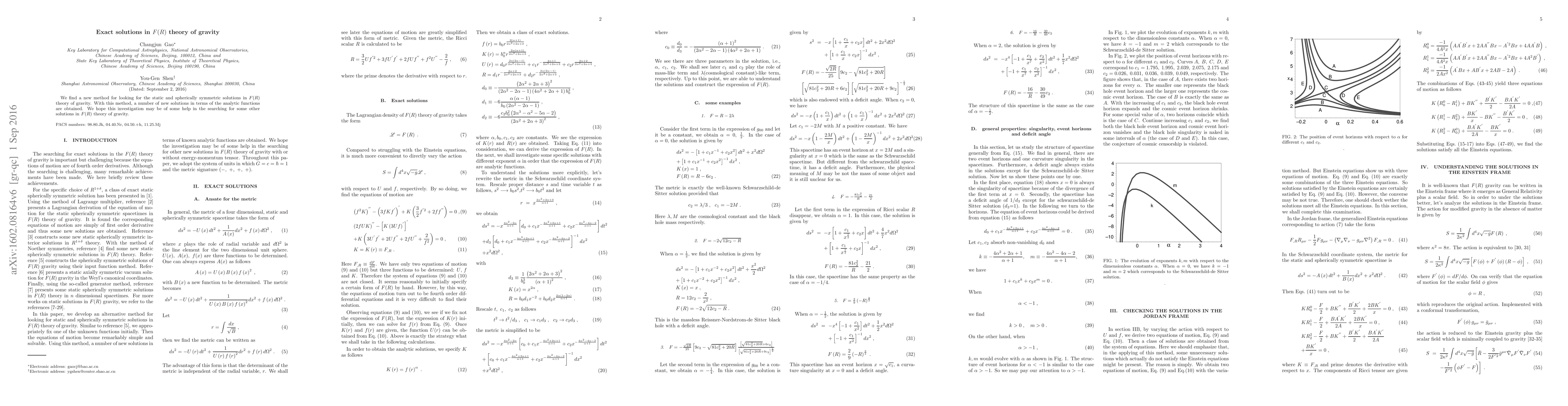 We find a new method for looking for the static and spherically symmetric solutions in $F(R)$ theory of gravity. With this method, a number of new solutions in terms of the analytic functions are obtained. We hope this investigation may be of some help in the searching for some other solutions in $F(R)$ theory of gravity.
