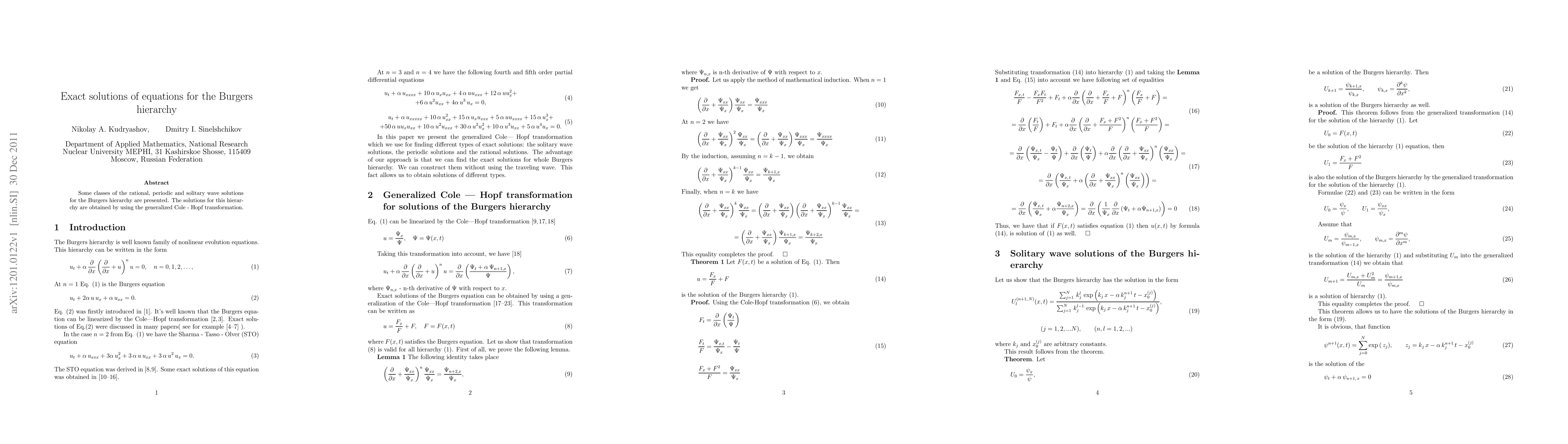 Researchers found exact solutions to equations for the Burgers hierarchy using a generalized Cole-Hopf transformation, representing rational, periodic, and solitary wave patterns.