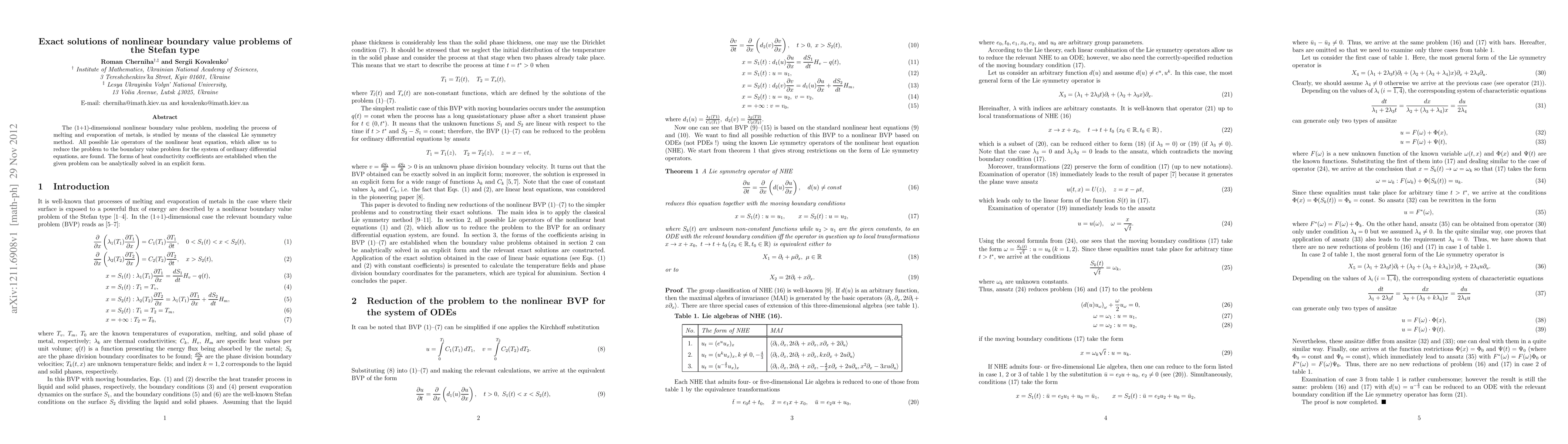 The (1+1)-dimensional nonlinear boundary value problem, modeling the process of melting and evaporation of metals, is studied by means of the classical Lie symmetry method. All possible Lie operators of the nonlinear heat equation, which allow us to reduce the problem to the boundary value problem for the system of ordinary differential equations, are found. The forms of heat conductivity coefficients are established when the given problem can be analytically solved in an explicit form.