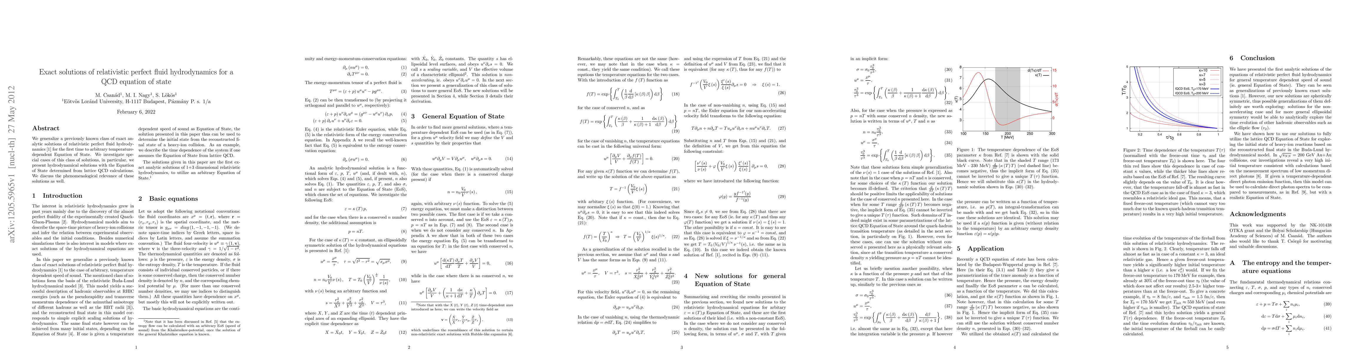 This paper generalizes exact analytic solutions of relativistic perfect fluid hydrodynamics to accommodate any temperature-dependent Equation of State, specifically applying these solutions to those derived from lattice QCD calculations. The study also examines the phenomenological implications of these new solutions.