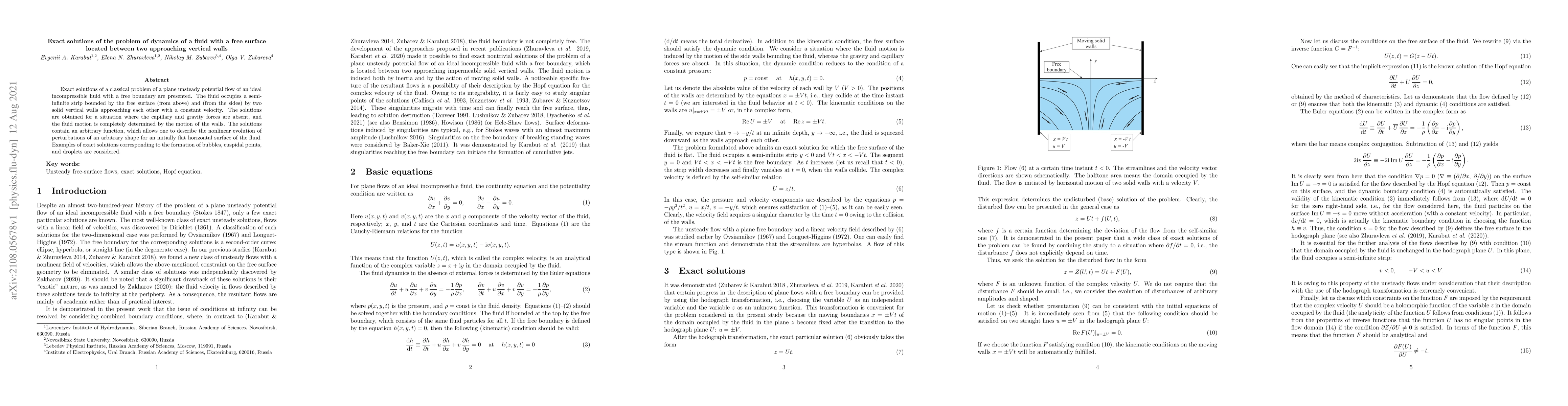 Exact solutions of a classical problem of a plane unsteady potential flow of an ideal incompressible fluid with a free boundary are presented. The fluid occupies a semi-infinite strip bounded by the free surface (from above) and (from the sides) by two solid vertical walls approaching each other with a constant velocity. The solutions are obtained for a situation where the capillary and gravity forces are absent, and the fluid motion is completely determined by the motion of the walls. The solutions contain an arbitrary function, which allows one to describe the nonlinear evolution of perturbations of an arbitrary shape for an initially flat horizontal surface of the fluid. Examples of exact solutions corresponding to the formation of bubbles, cuspidal points, and droplets are considered.