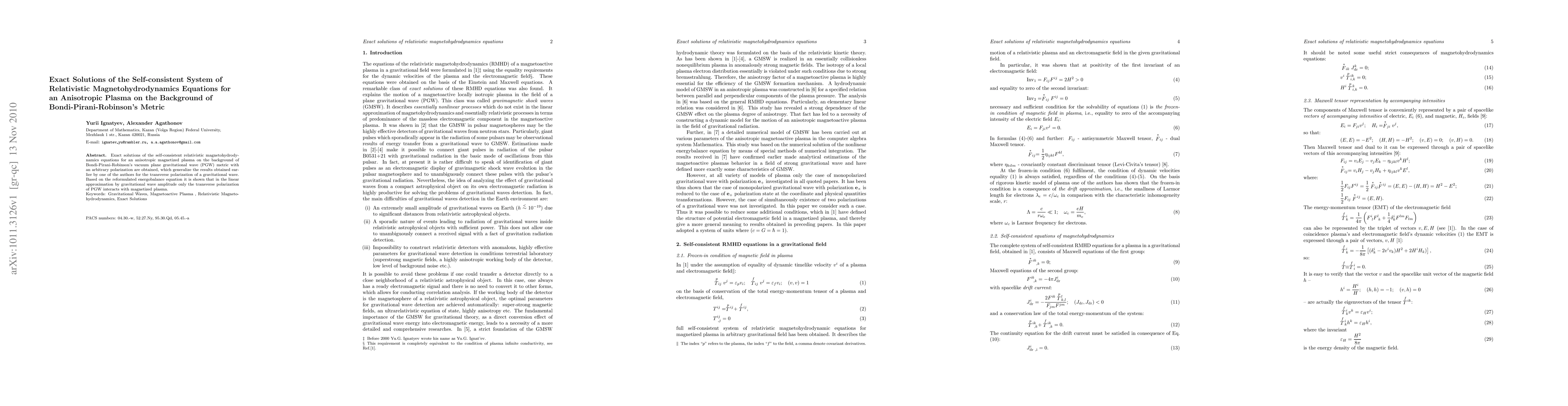 This paper presents exact solutions for relativistic magnetohydrodynamics in anisotropic plasmas under the Bondi-Pirani-Robinson metric, extending previous results to include arbitrary gravitational wave polarizations. It demonstrates that only transverse polarizations of plane gravitational waves interact with magnetized plasma in linear approximation.