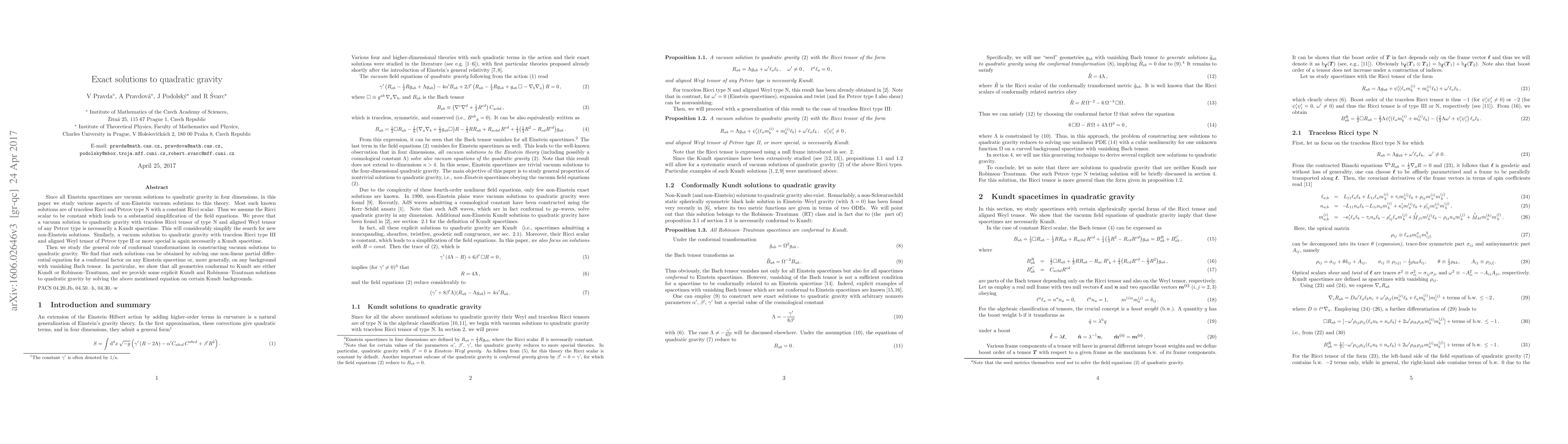 Since all Einstein spacetimes are vacuum solutions to quadratic gravity in four dimensions, in this paper we study various aspects of non-Einstein vacuum solutions to this theory. Most such known solutions are of traceless Ricci and Petrov type N with a constant Ricci scalar. Thus we assume the Ricci scalar to be constant which leads to a substantial simplification of the field equations. We prove that a vacuum solution to quadratic gravity with traceless Ricci tensor of type N and aligned Weyl tensor of any Petrov type is necessarily a Kundt spacetime. This will considerably simplify the search for new non-Einstein solutions. Similarly, a vacuum solution to quadratic gravity with traceless Ricci type III and aligned Weyl tensor of Petrov type II or more special is again necessarily a Kundt spacetime. Then we study the general role of conformal transformations in constructing vacuum solutions to quadratic gravity. We find that such solutions can be obtained by solving one non-linear partial differential equation for a conformal factor on any Einstein spacetime or, more generally, on any background with vanishing Bach tensor. In particular, we show that all geometries conformal to Kundt are either Kundt or Robinson-Trautman, and we provide some explicit Kundt and Robinson-Trautman solutions to quadratic gravity by solving the above mentioned equation on certain Kundt backgrounds.