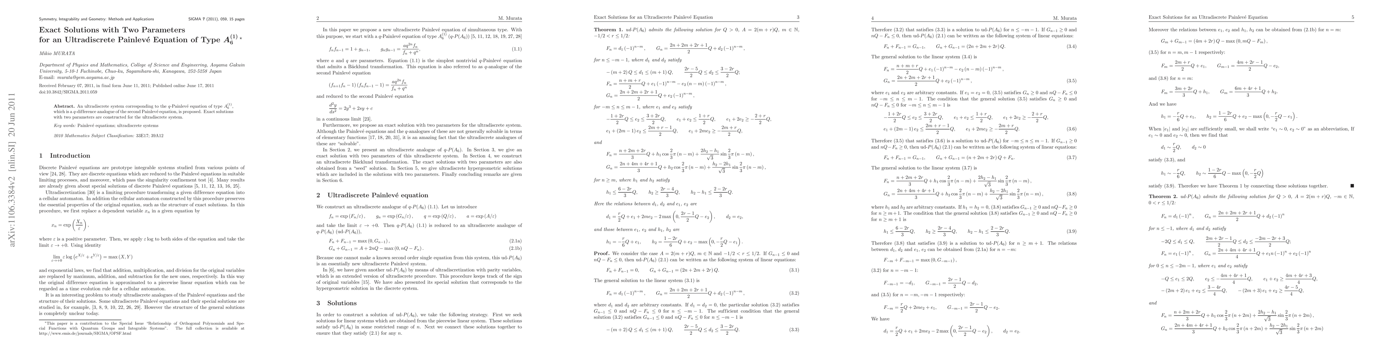 Summary: The paper introduces an ultradiscrete system based on the $q$-Painlevé equation of type $A_6^{(1)}$ and provides exact solutions with two parameters for this system.