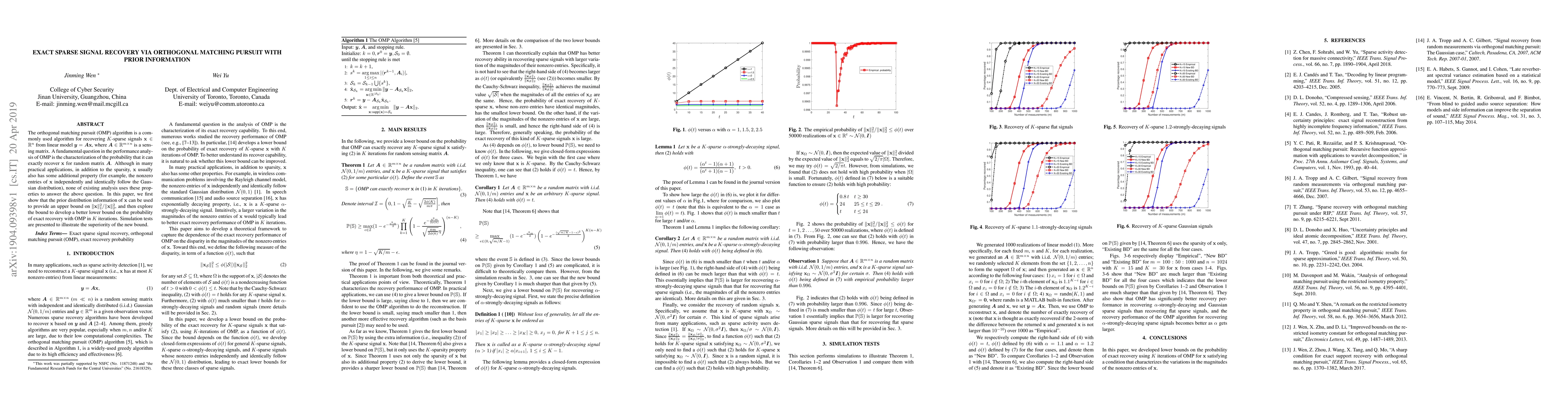 This paper investigates the orthogonal matching pursuit (OMP) algorithm for sparse signal recovery, incorporating prior distribution information of the signal to improve recovery probability. It develops a new lower bound on the exact recovery probability using this prior information, validated by simulation tests.