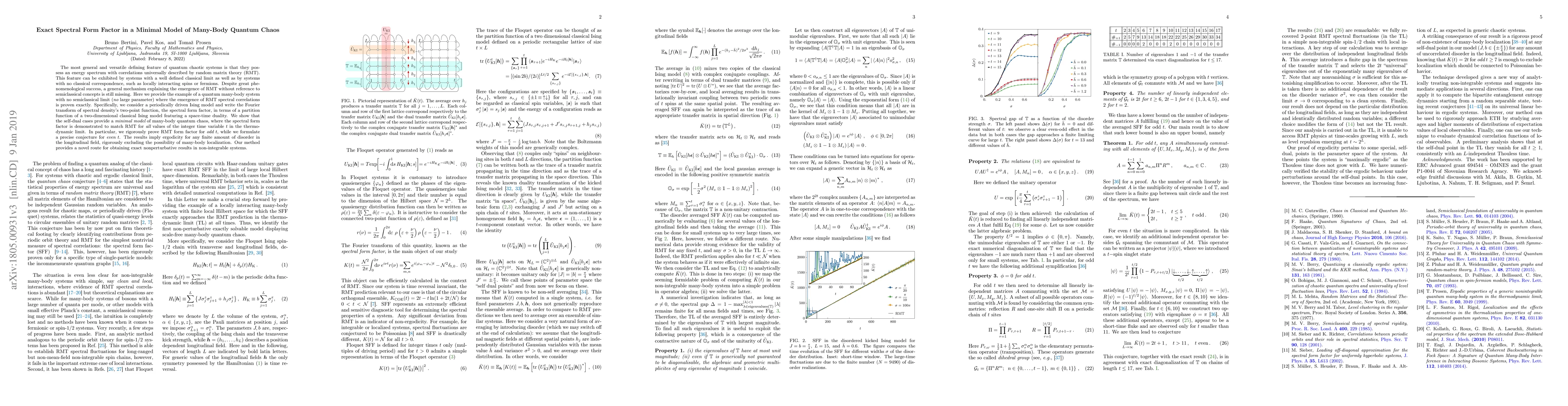 This paper demonstrates the exact spectral form factor for a periodically driven Ising model, showing that it matches random matrix theory (RMT) for odd times, and proposes a conjecture for even times. The study reveals ergodicity and excludes many-body localization, providing a new method for exact nonperturbative results in quantum chaos.