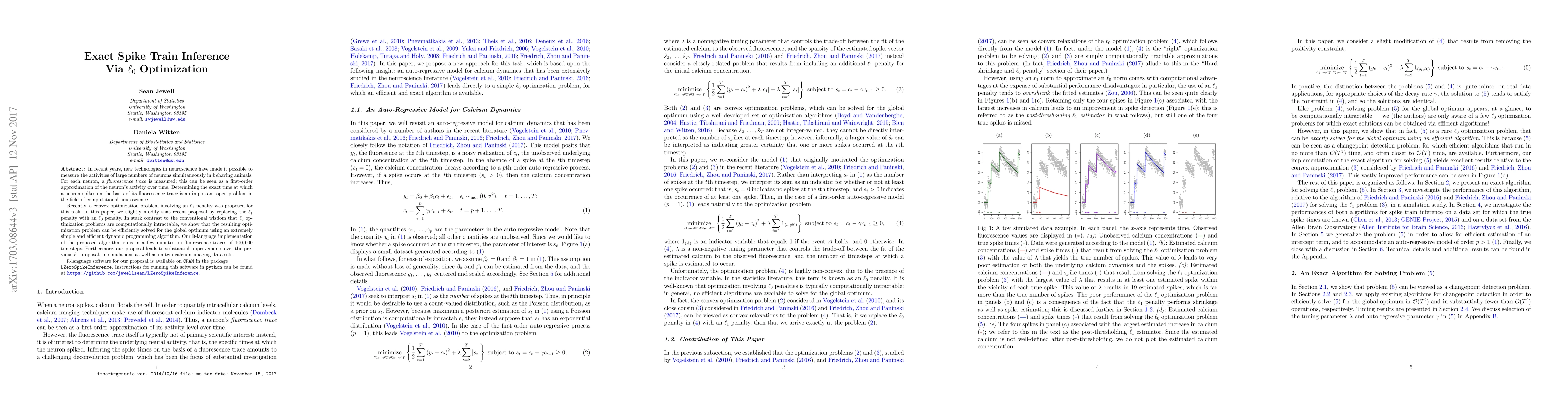 This paper presents an efficient dynamic programming algorithm for exact spike train inference in neuroscience, replacing the conventional $ell_1$ penalty with an $ell_0$ penalty. The algorithm, solving the previously considered intractable $ell_0$ optimization problem, runs in minutes for traces of 100,000 timesteps. It significantly outperforms the $ell_1$ method in simulations and real calcium imaging datasets.