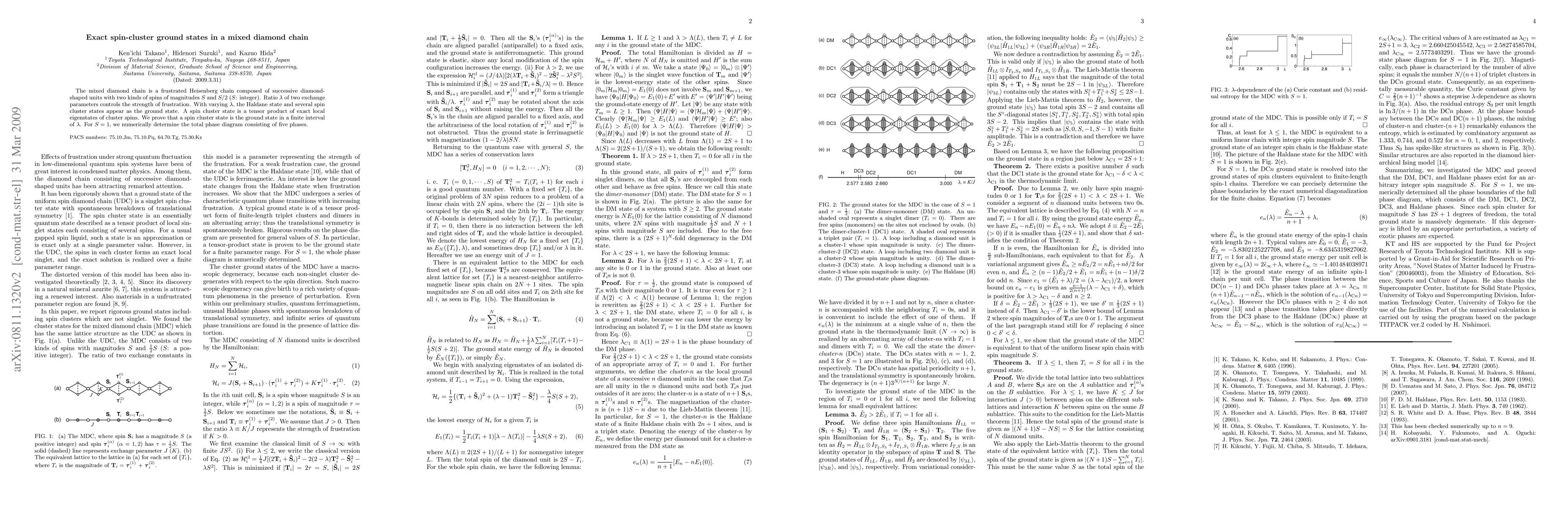 The mixed diamond chain exhibits a variety of ground states, including the Haldane state and spin cluster states, depending on the ratio of exchange parameters $lambda$. A spin cluster state is proven to be the ground state within a specific interval of $lambda$, and for S=1, a total phase diagram with five phases is numerically determined.