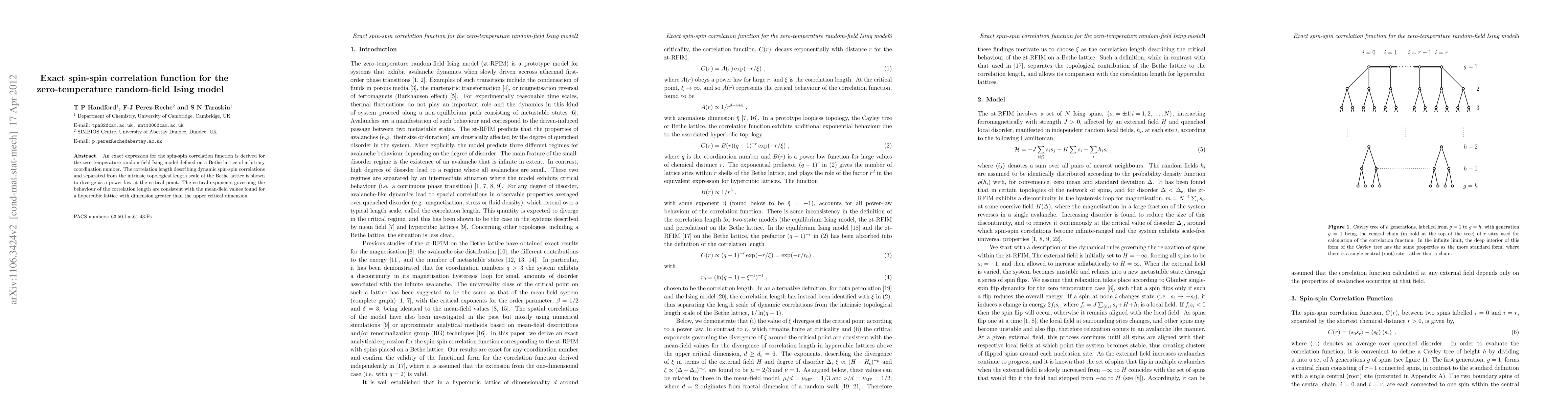 This paper derives an exact expression for the spin-spin correlation function in the zero-temperature random-field Ising model on a Bethe lattice. It finds that the correlation length diverges as a power law at the critical point, with critical exponents matching mean-field values for higher-dimensional hypercubic lattices.