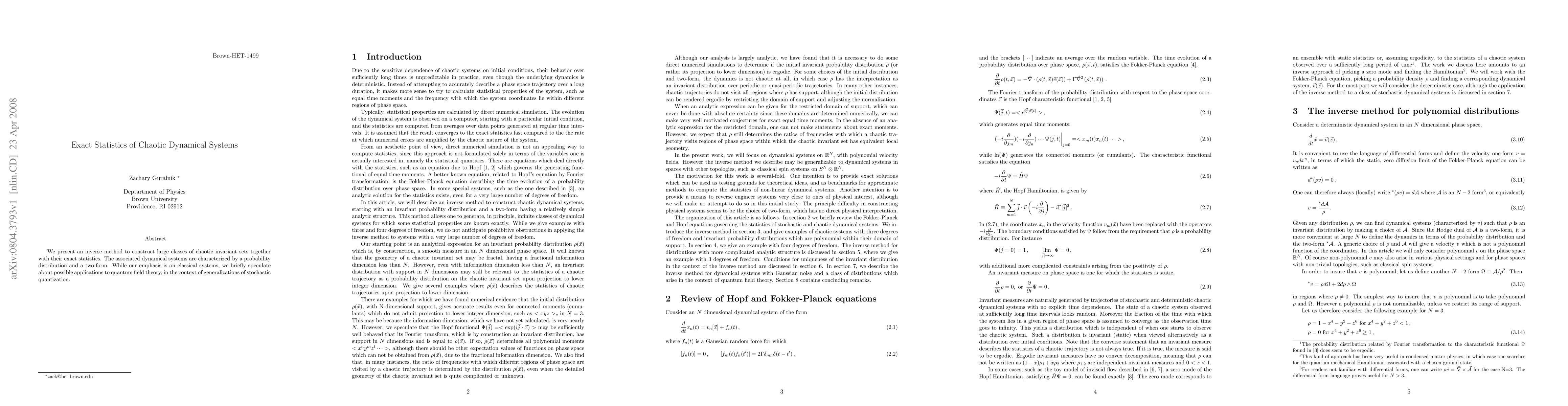 We present an inverse method to construct large classes of chaotic invariant sets together with their exact statistics. The associated dynamical systems are characterized by a probability distribution and a two-form. While our emphasis is on classical systems, we briefly speculate about possible applications to quantum field theory, in the context of generalizations of stochastic quantization.