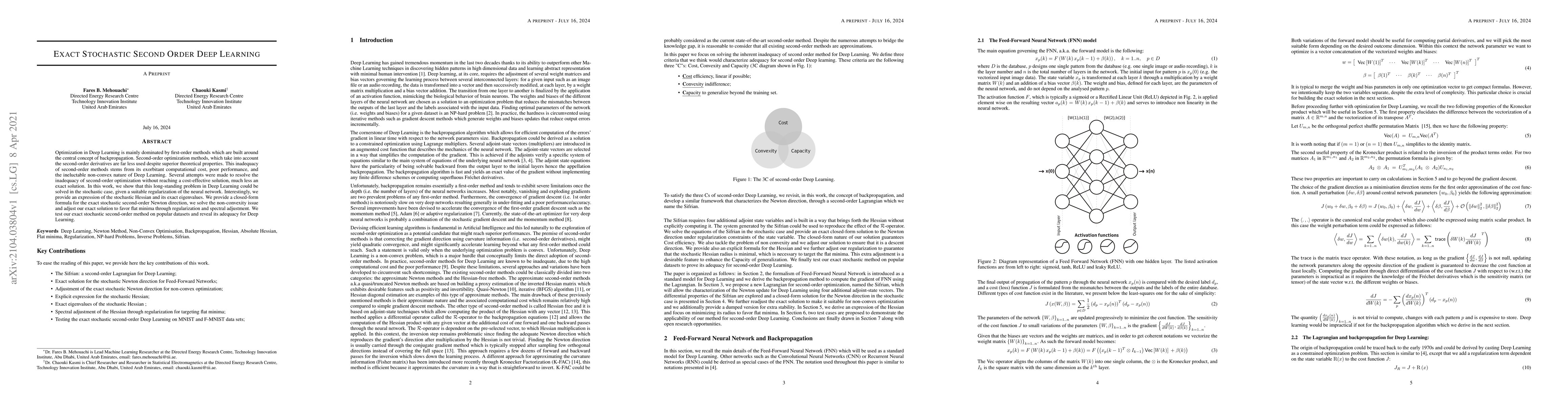 This paper proposes an exact stochastic second-order optimization method for Deep Learning, addressing the computational challenges and non-convexity issues. It introduces a closed-form formula for the stochastic second-order Newton direction and demonstrates its effectiveness through regularization and spectral adjustment on popular datasets.