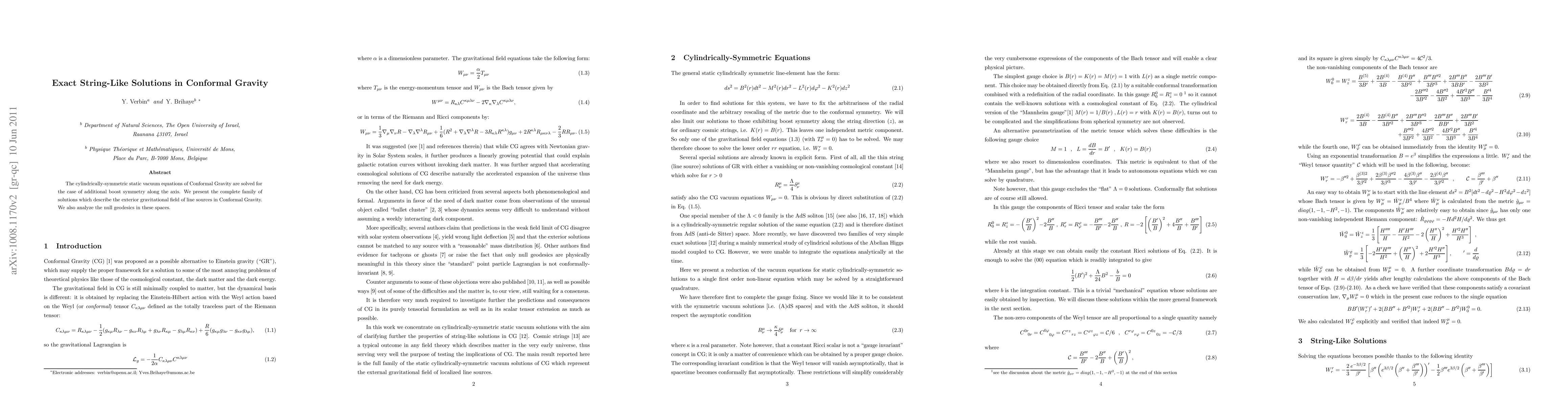 This paper solves the cylindrically-symmetric static vacuum equations of Conformal Gravity with boost symmetry, presenting a complete family of solutions for line sources' exterior gravitational fields and analyzing the corresponding null geodesics.