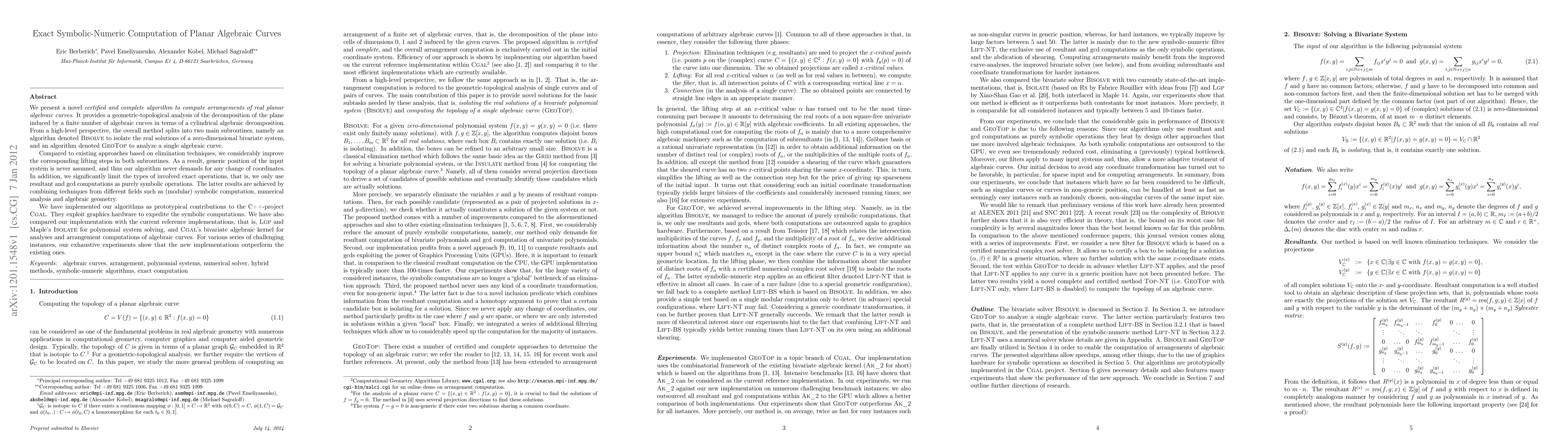 We present a novel certified and complete algorithm to compute arrangements of real planar algebraic curves. It provides a geometric-topological analysis of the decomposition of the plane induced by a finite number of algebraic curves in terms of a cylindrical algebraic decomposition. From a high-level perspective, the overall method splits into two main subroutines, namely an algorithm denoted Bisolve to isolate the real solutions of a zero-dimensional bivariate system, and an algorithm denoted GeoTop to analyze a single algebraic curve. Compared to existing approaches based on elimination techniques, we considerably improve the corresponding lifting steps in both subroutines. As a result, generic position of the input system is never assumed, and thus our algorithm never demands for any change of coordinates. In addition, we significantly limit the types of involved exact operations, that is, we only use resultant and gcd computations as purely symbolic operations. The latter results are achieved by combining techniques from different fields such as (modular) symbolic computation, numerical analysis and algebraic geometry. We have implemented our algorithms as prototypical contributions to the C++-project CGAL. They exploit graphics hardware to expedite the symbolic computations. We have also compared our implementation with the current reference implementations, that is, LGP and Maple's Isolate for polynomial system solving, and CGAL's bivariate algebraic kernel for analyses and arrangement computations of algebraic curves. For various series of challenging instances, our exhaustive experiments show that the new implementations outperform the existing ones.