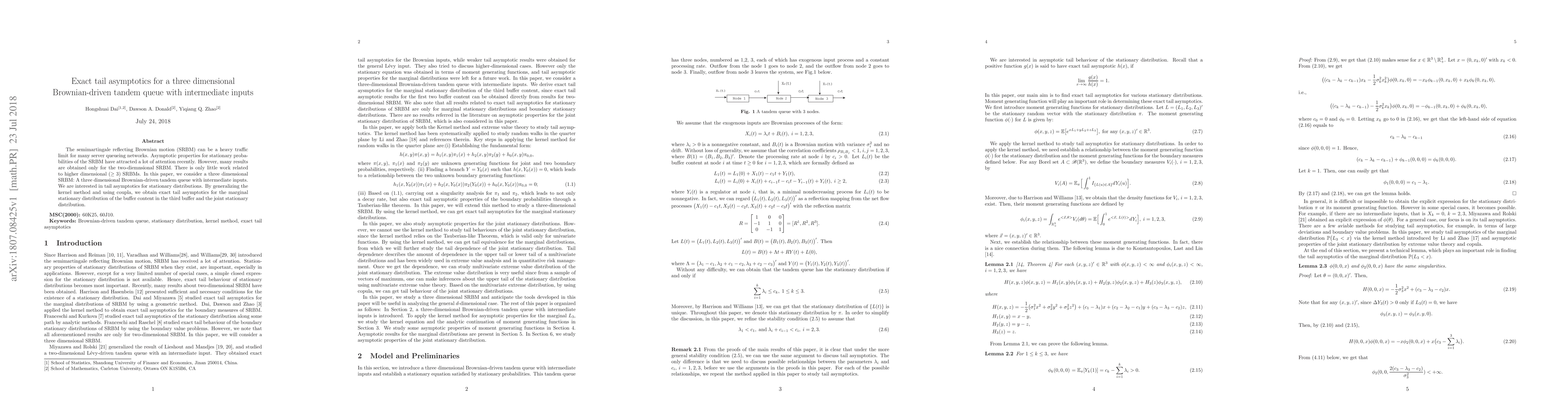 This paper investigates the exact tail asymptotics of a three-dimensional semimartingale reflecting Brownian motion (SRBM) in a Brownian-driven tandem queue with intermediate inputs. The authors generalize the kernel method and employ copula techniques to derive precise asymptotic behaviors for the marginal and joint stationary distributions.