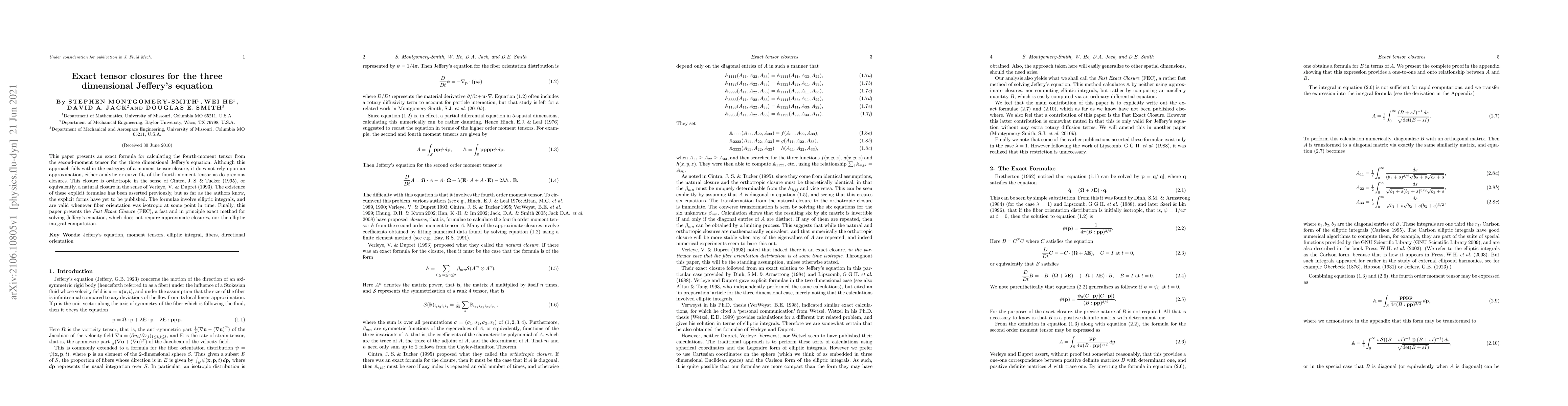 This paper provides an exact formula for calculating the fourth-moment tensor from the second-moment tensor in three-dimensional Jeffery's equation, avoiding approximations. It introduces the Fast Exact Closure (FEC) method, which offers a fast and exact solution without requiring elliptic integral computations.