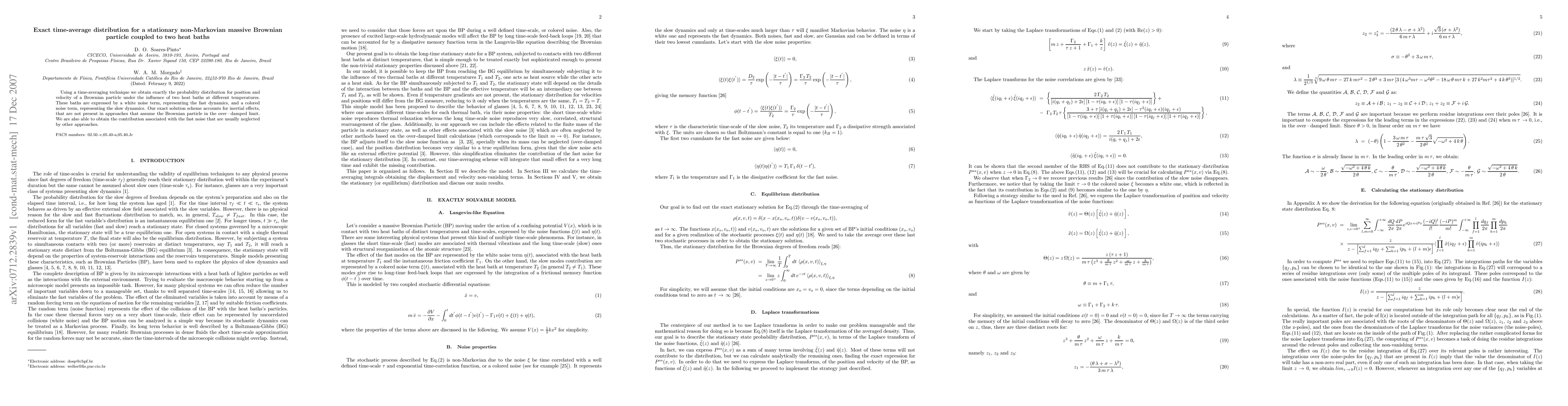 This paper introduces a precise time-averaging technique to derive the exact probability distribution for the position and velocity of a non-Markovian Brownian particle influenced by two heat baths at different temperatures. The solution uniquely captures inertial effects and the contribution of fast noise dynamics, often overlooked in over-damped limit assumptions.