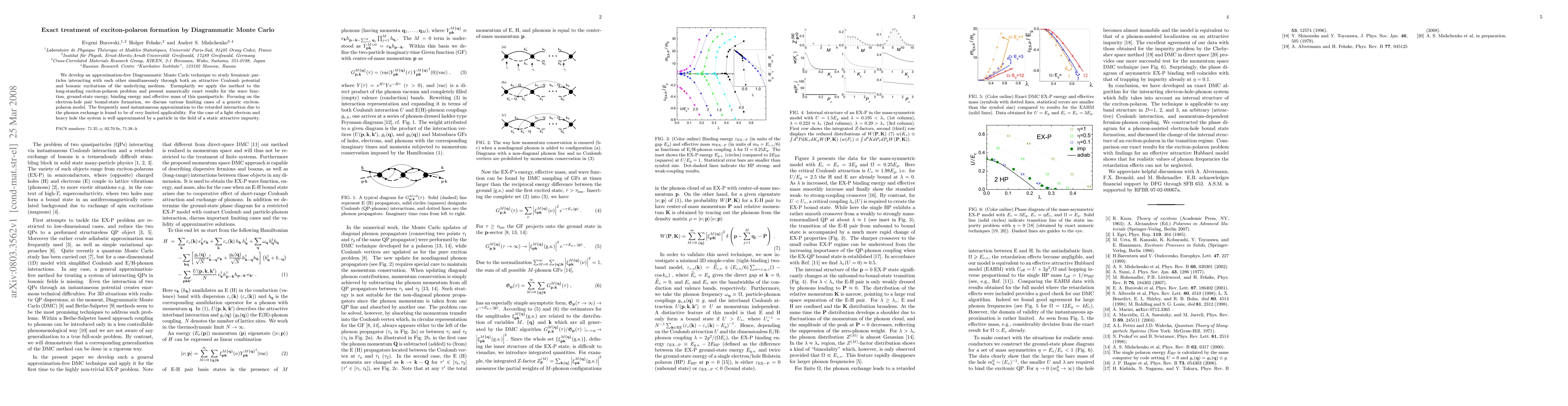 This paper introduces an approximation-free Diagrammatic Monte Carlo method to study fermionic interactions via both Coulomb potential and medium excitations. It applies this technique to exciton-polaron formation, providing exact results for wave function, ground-state energy, and effective mass, and finds that the instantaneous approximation for phonon exchange is largely inapplicable.
