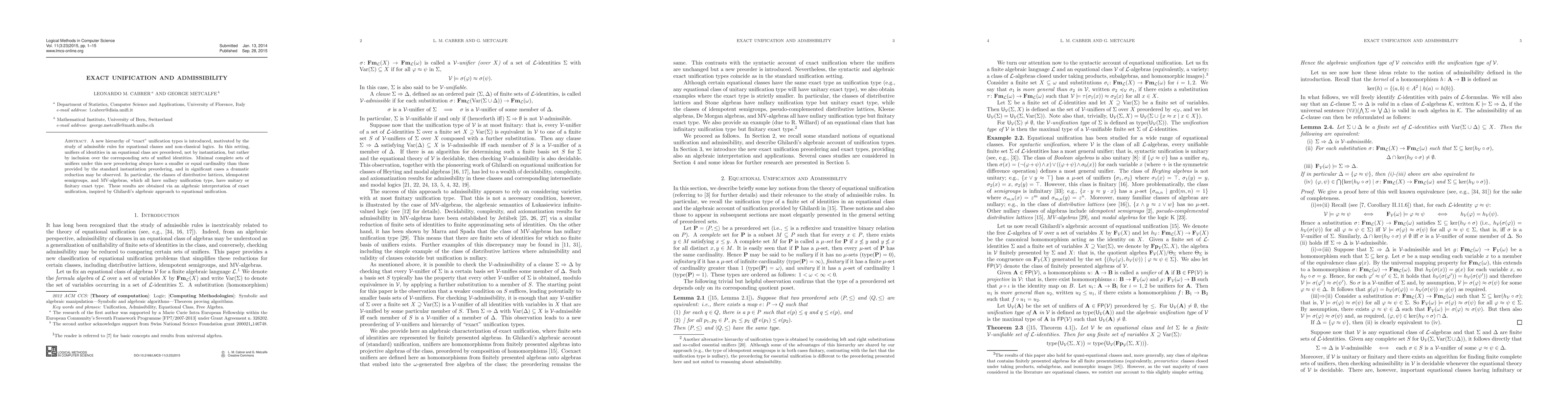 This paper introduces a new hierarchy of "exact" unification types, showing that minimal complete sets of unifiers under this new preordering are often smaller than those under standard instantiation. The approach is particularly effective for classes like distributive lattices and MV-algebras, achieving unitary or finitary exact type.