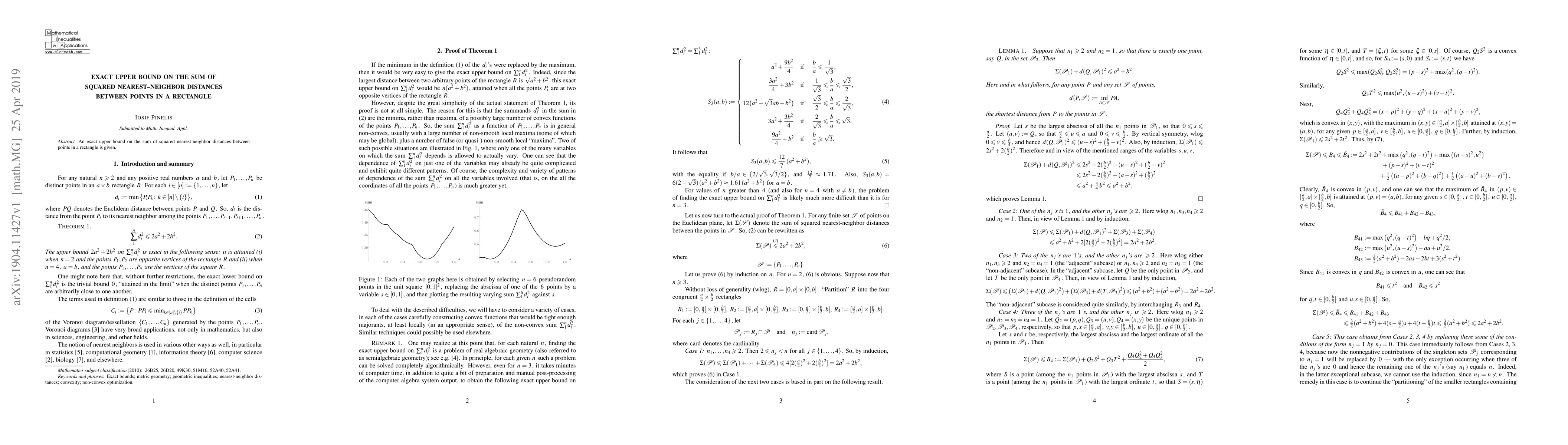 Summary: This paper provides an exact mathematical upper bound for the sum of squared nearest-neighbor distances between points located within a rectangle, contributing to the understanding of spatial relationships in geometric configurations.