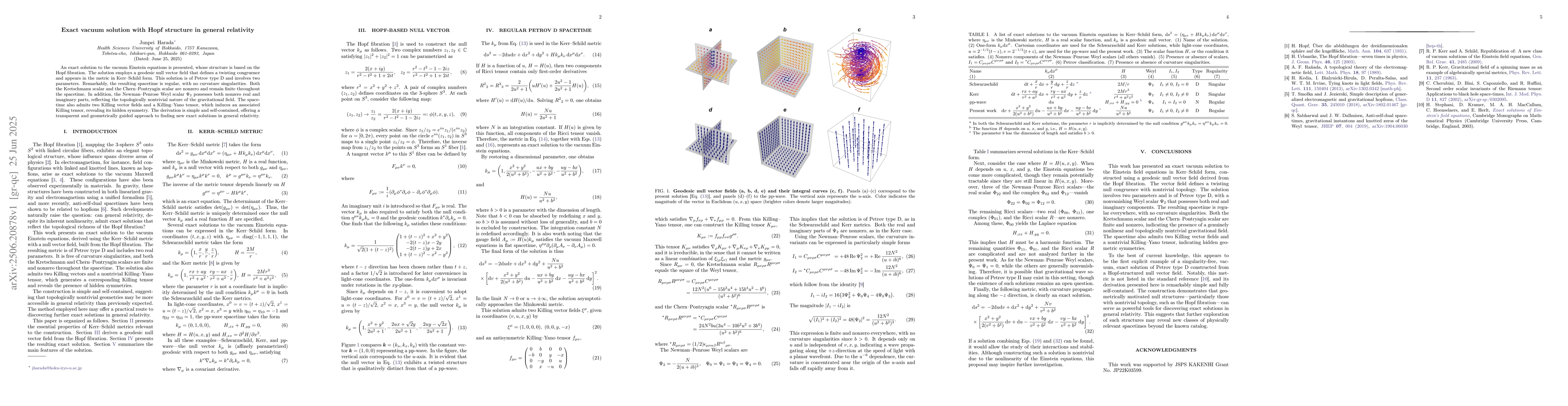An exact solution to the vacuum Einstein equations is presented, whose structure is based on the Hopf fibration. The solution employs a geodesic null vector field that defines a twisting congruence and appears in the metric in Kerr-Schild form. This solution is of Petrov type D and involves two parameters. Remarkably, the resulting spacetime is regular, with no curvature singularities. Both the Kretschmann scalar and the Chern-Pontryagin scalar are nonzero and remain finite throughout the spacetime. In addition, the Newman-Penrose Weyl scalar $\Psi_2$ possesses both nonzero real and imaginary parts, reflecting the topologically nontrivial nature of the gravitational field. The spacetime also admits two Killing vector fields and a Killing-Yano tensor, which induces an associated Killing tensor, revealing its hidden symmetry. The derivation is simple and self-contained, offering a transparent and geometrically guided approach to finding new exact solutions in general relativity.
