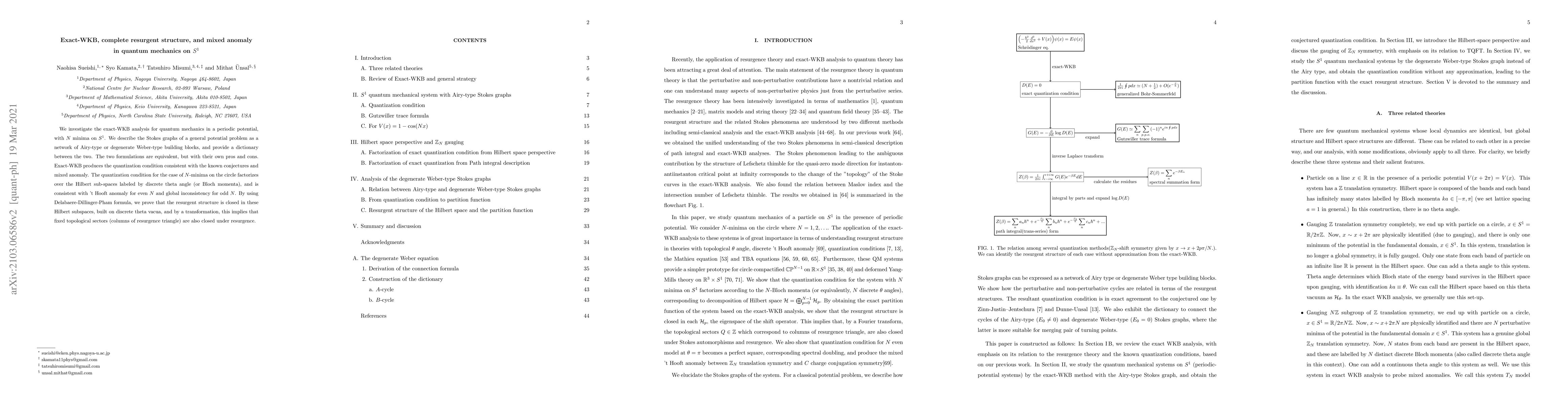 This paper explores exact-WKB analysis for quantum mechanics on $S^1$ with $N$ minima, revealing equivalence between Airy-type and degenerate Weber-type Stokes graphs. It demonstrates a closed resurgent structure and mixed anomaly, consistent with 't Hooft anomaly for even $N$ and global inconsistency for odd $N$.