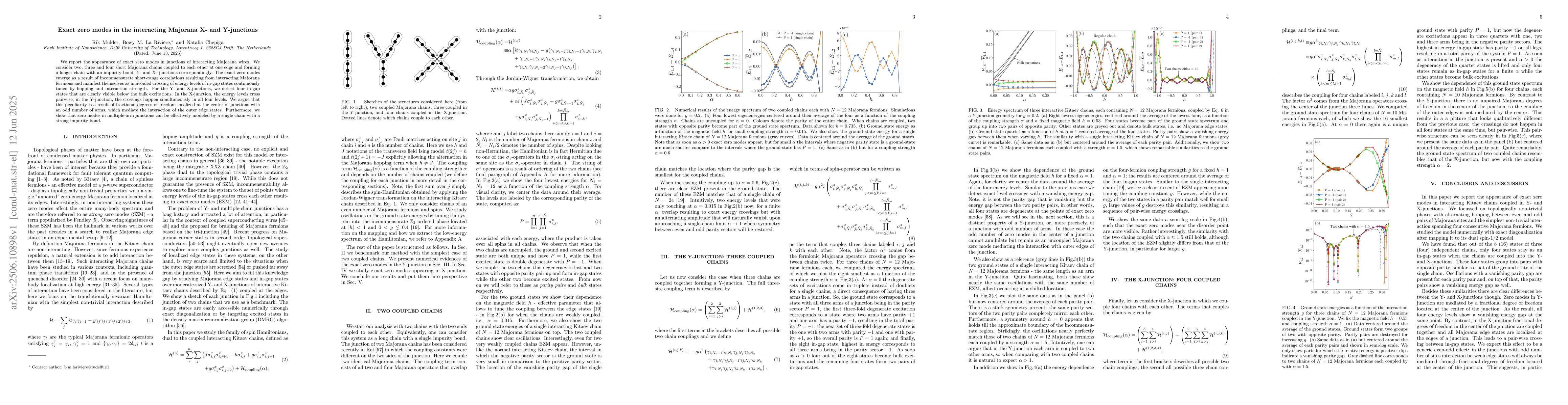 Research discovers exact zero modes in interacting Majorana junctions, which occur due to short-range correlations between Majorana fermions and can lead to unique energy level crossings in Y- and X-junctions.