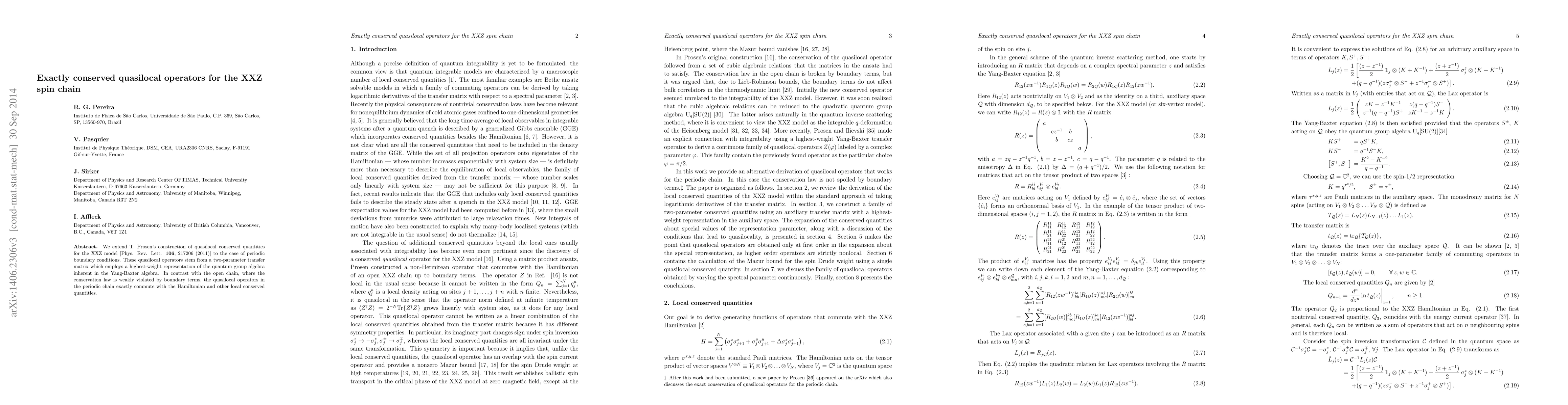 This paper extends Prosen's method for constructing quasilocal conserved quantities in the XXZ spin chain to periodic boundary conditions, revealing that these operators exactly commute with the Hamiltonian and other local conserved quantities, unlike in open chains where boundary terms weakly violate the conservation law.