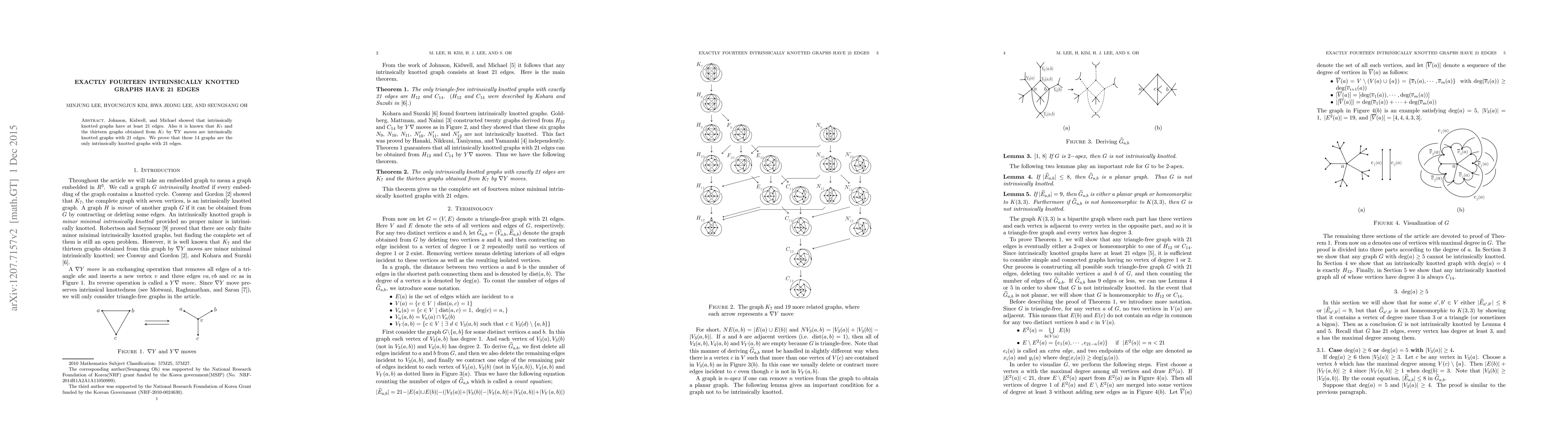 This paper proves that exactly fourteen intrinsically knotted graphs with 21 edges exist, confirming that K7 and thirteen derived graphs are the sole representatives of this category. No other intrinsically knotted graphs with 21 edges exist beyond these fourteen.
