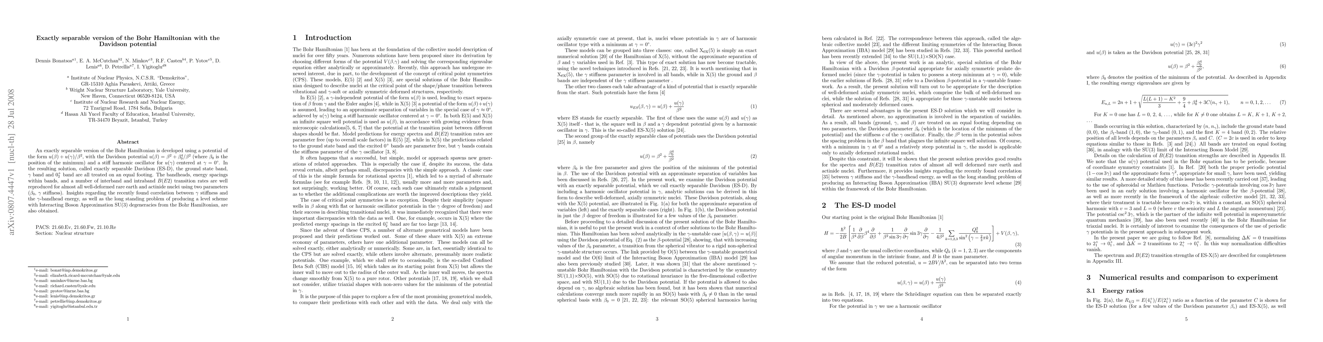 An exactly separable version of the Bohr Hamiltonian is developed using a potential of the form u(beta)+u(gamma)/beta^2, with the Davidson potential u(beta)= beta^2 + beta_0^4/beta^2 (where beta_0 is the position of the minimum) and a stiff harmonic oscillator for u(gamma) centered at gamma=0. In the resulting solution, called exactly separable Davidson (ES-D), the ground state band, gamma band and 0_2^+ band are all treated on an equal footing. The bandheads, energy spacings within bands, and a number of interband and intraband B(E2) transition rates are well reproduced for almost all well-deformed rare earth and actinide nuclei using two parameters (beta_0, gamma stiffness). Insights regarding the recently found correlation between gamma stiffness and the gamma-bandhead energy, as well as the long standing problem of producing a level scheme with Interacting Boson Approximation SU(3) degeneracies from the Bohr Hamiltonian, are also obtained.