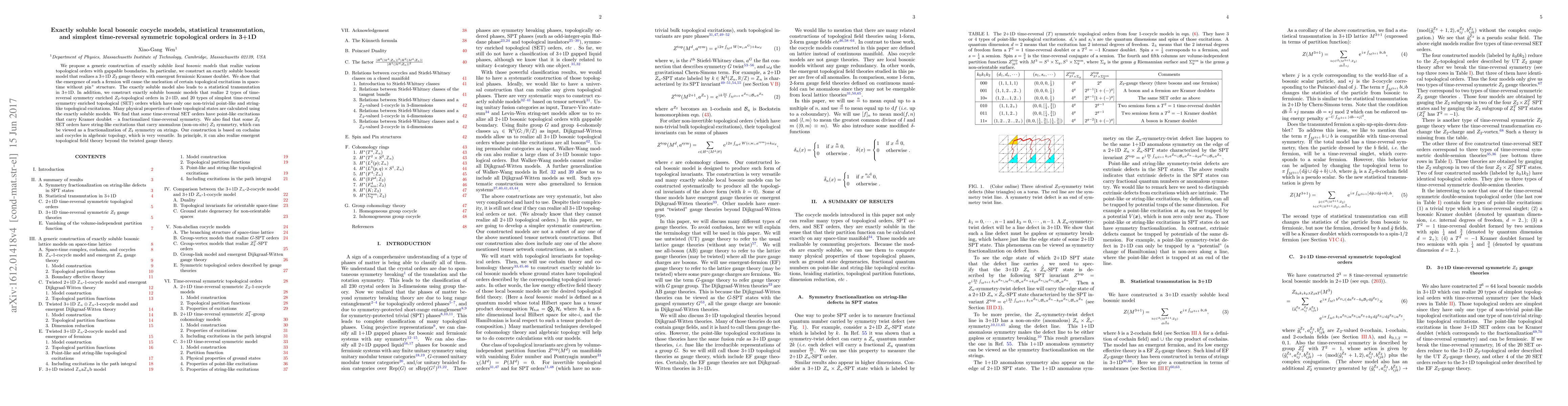 This paper constructs exactly soluble local bosonic models that realize various topological orders in 3+1D and 2+1D, including $Z_2$ gauge theory and time-reversal symmetry enriched topological orders. It highlights the emergence of topological excitations and fractionalized symmetries, and uses cocycles from algebraic topology for versatile model construction.