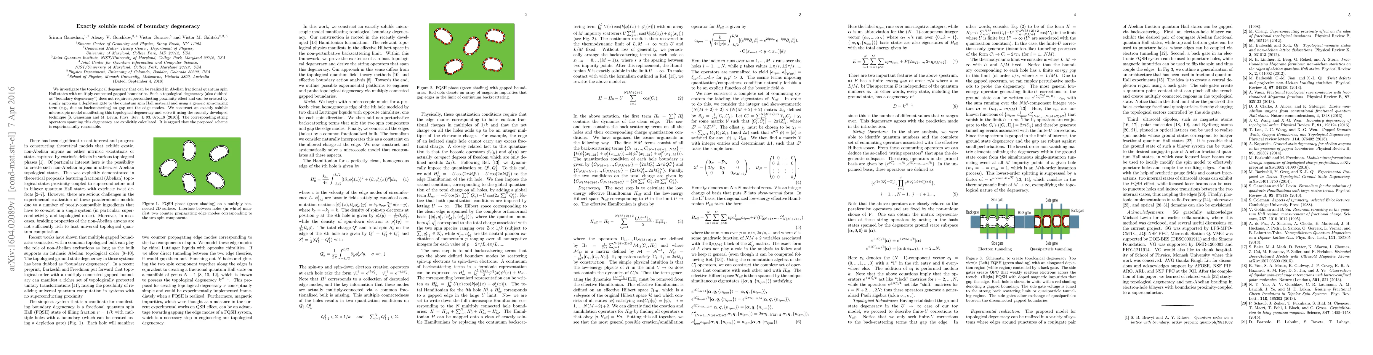 This paper constructs an exactly soluble model for topological degeneracy in Abelian fractional quantum spin Hall states with multiply connected boundary regions, achieved via a depletion gate and spin-mixing terms. The model is solved using a recent technique, revealing explicit string operators that span the boundary degeneracy, and the proposed scheme is deemed experimentally feasible.