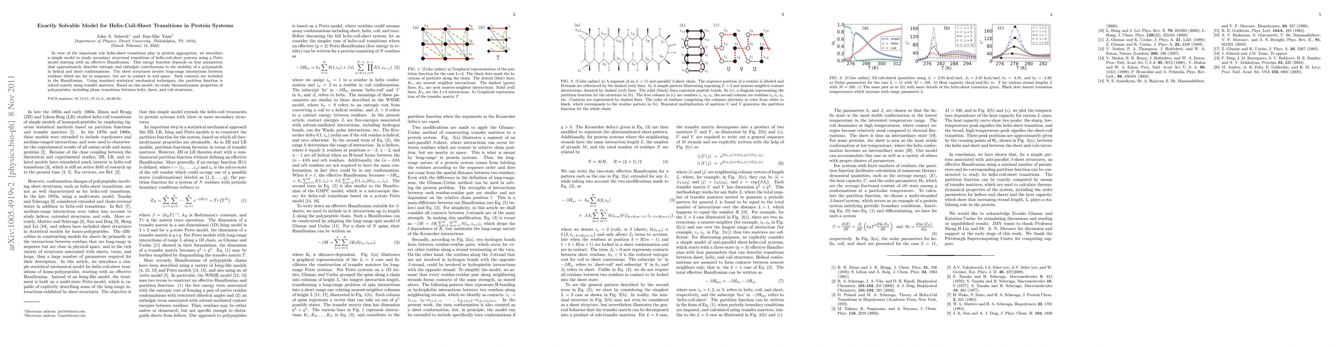 This paper introduces a Potts model to study the helix-coil-sheet transitions in protein systems, using a Hamiltonian that captures entropic and enthalpic factors. The model's partition function is solved exactly, allowing for the examination of thermodynamic properties and phase transitions between different protein structures.