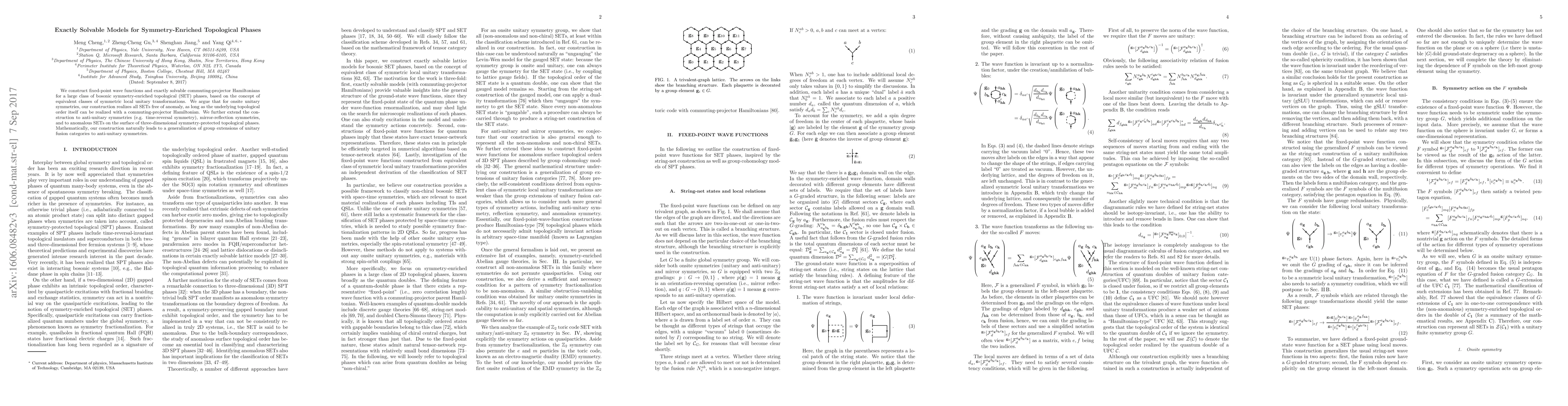 Summary: This paper presents exactly solvable models for bosonic symmetry-enriched topological phases, constructing wave functions and Hamiltonians for a broad range of symmetry classes, including anti-unitary and anomalous cases, and extending the mathematical framework to include anti-unitary symmetries. The construction realizes all SET phases free of anomaly under certain conditions.