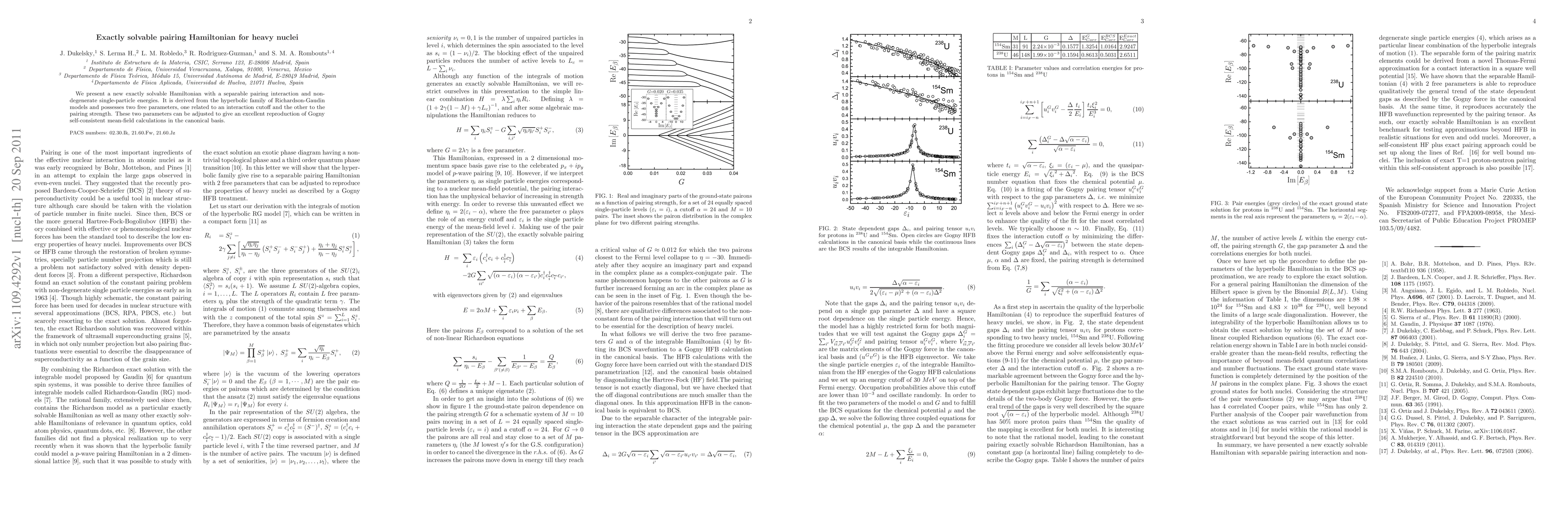 This paper introduces an exactly solvable pairing Hamiltonian for heavy nuclei, derived from the hyperbolic Richardson-Gaudin models, featuring two adjustable parameters for interaction cutoff and pairing strength that accurately replicate Gogny mean-field calculations.
