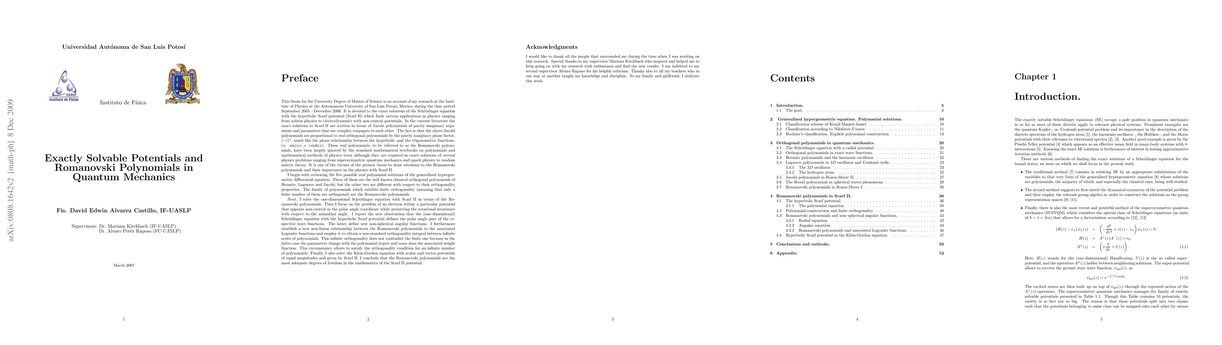 Orthogonal Polynomials in Quantum Mechanics. Exact solutions of the Schrodinger equation with the hyperbolic Scarf potential (Scarf II) in terms of Romanovski polynomials. Among the applications included is the solution of the problem of an electron within a particular potential leading to the definition of new non-spherical angular functions.