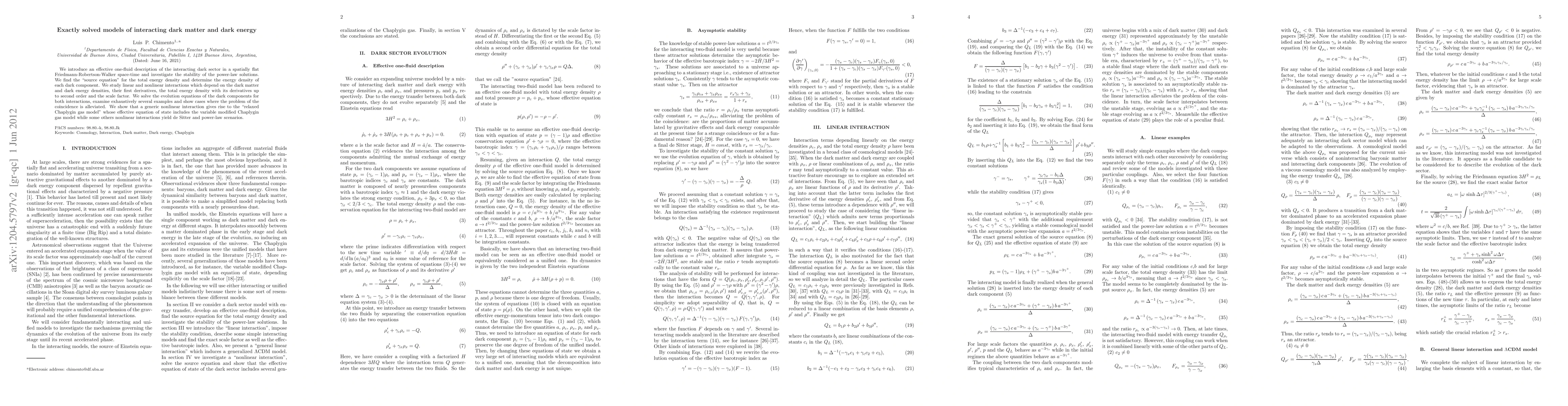 We introduce an effective one-fluid description of the interacting dark sector in a spatially flat Friedmann-Robertson-Walker space-time and investigate the stability of the power-law solutions. We find the "source equation" for the total energy density and determine the energy density of each dark component. We study linear and nonlinear interactions which depend on the dark matter and dark energy densities, their first derivatives, the total energy density with its derivatives up to second order and the scale factor. We solve the evolution equations of the dark components for both interactions, examine exhaustively several examples and show cases where the problem of the coincidence is alleviated. We show that a generic nonlinear interaction gives rise to the "relaxed Chaplygin gas model" whose effective equation of state includes the variable modified Chaplygin gas model while some others nonlinear interactions yield de Sitter and power-law scenarios.
