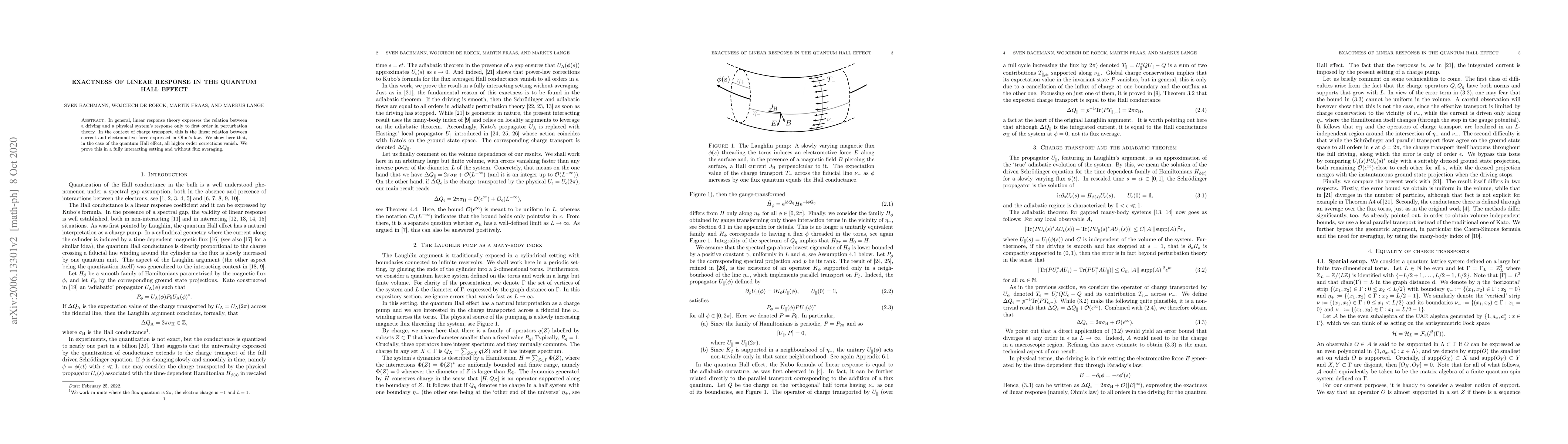 This paper demonstrates that, for the quantum Hall effect, linear response theory holds exact even beyond first-order perturbation, showing no higher-order corrections, thus proving exactness in a fully interacting and non-averaged flux scenario.