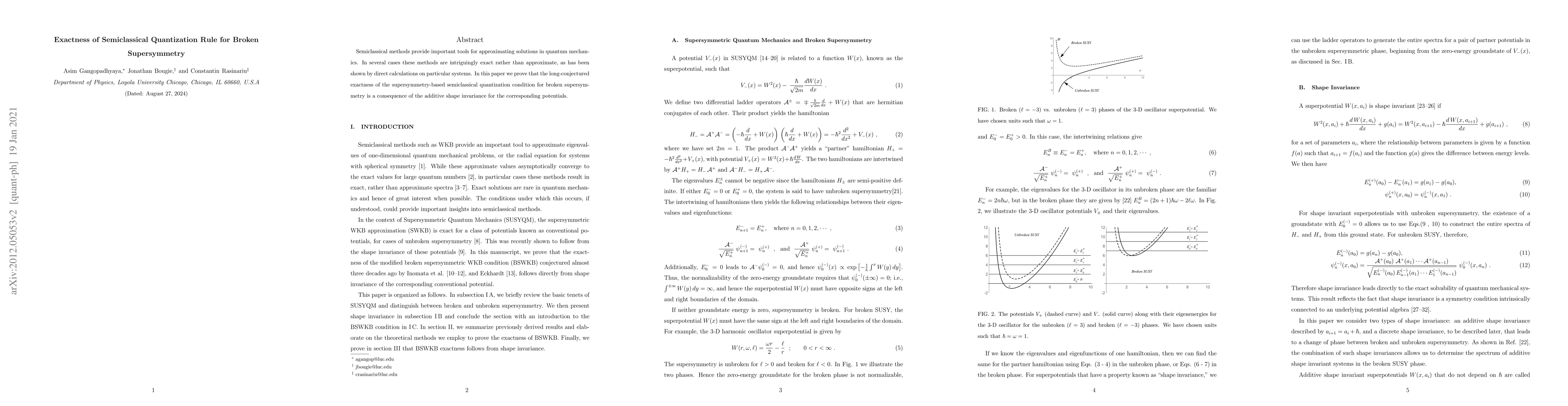 Semiclassical methods provide important tools for approximating solutions in quantum mechanics. In several cases these methods are intriguingly exact rather than approximate, as has been shown by direct calculations on particular systems. In this paper we prove that the long-conjectured exactness of the supersymmetry-based semiclassical quantization condition for broken supersymmetry is a consequence of the additive shape invariance for the corresponding potentials.