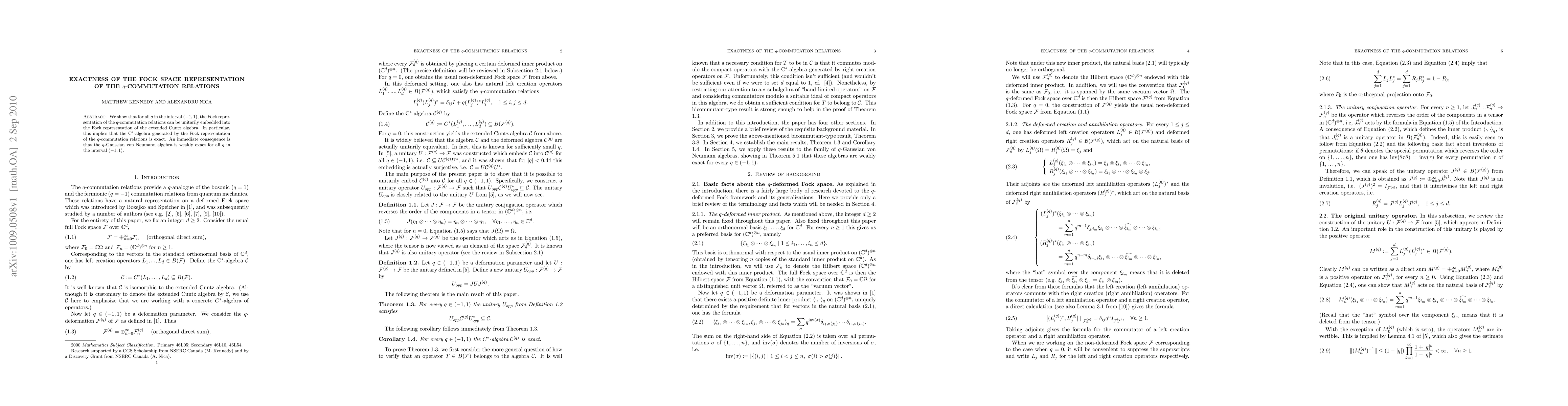 Summary: The paper demonstrates that the Fock representation of the q-commutation relations can be unitarily embedded into the extended Cuntz algebra for q in (-1,1), proving the exactness of the C*-algebra generated by this representation and the weak exactness of the q-Gaussian von Neumann algebra for the same q interval.